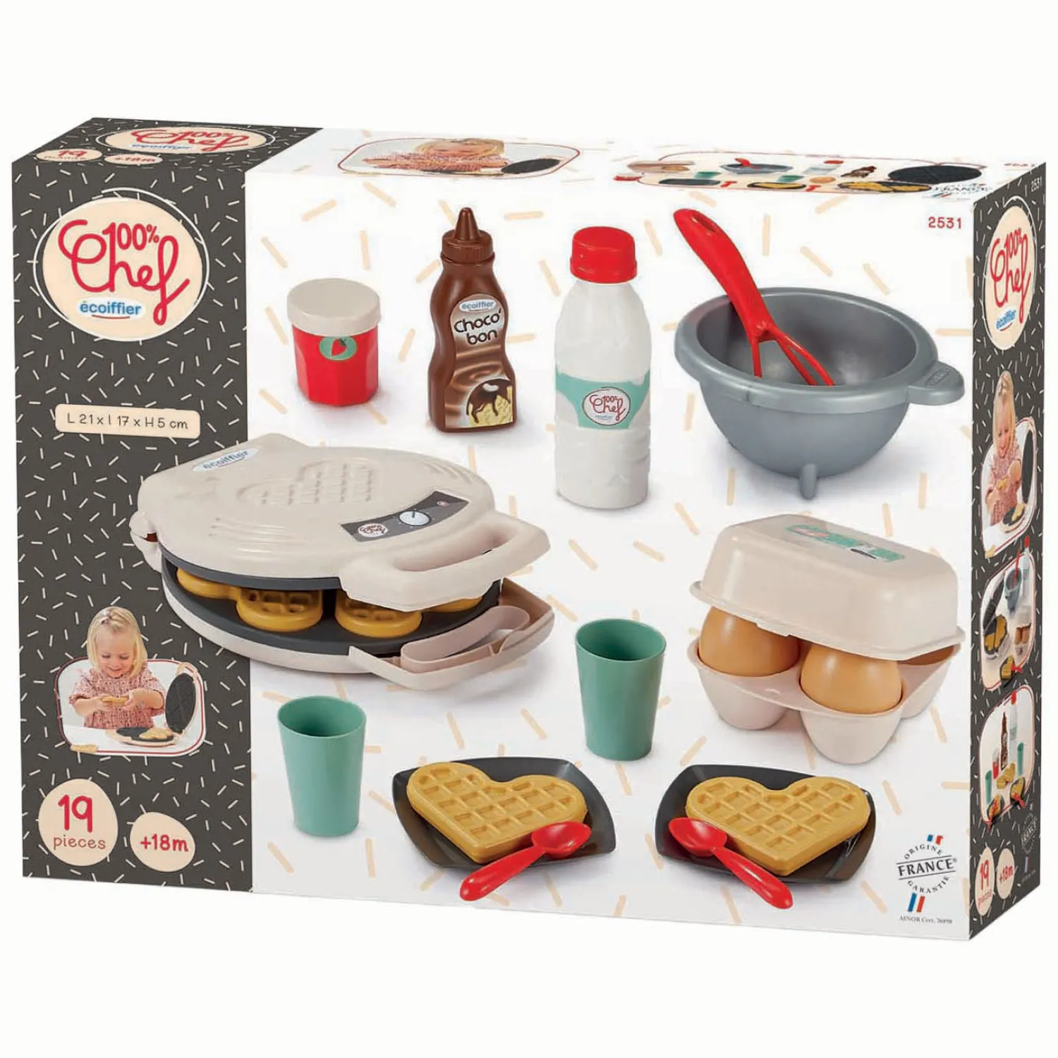 • 19-delige speelset met wafelijzer, hartvormige wafels en accessoires