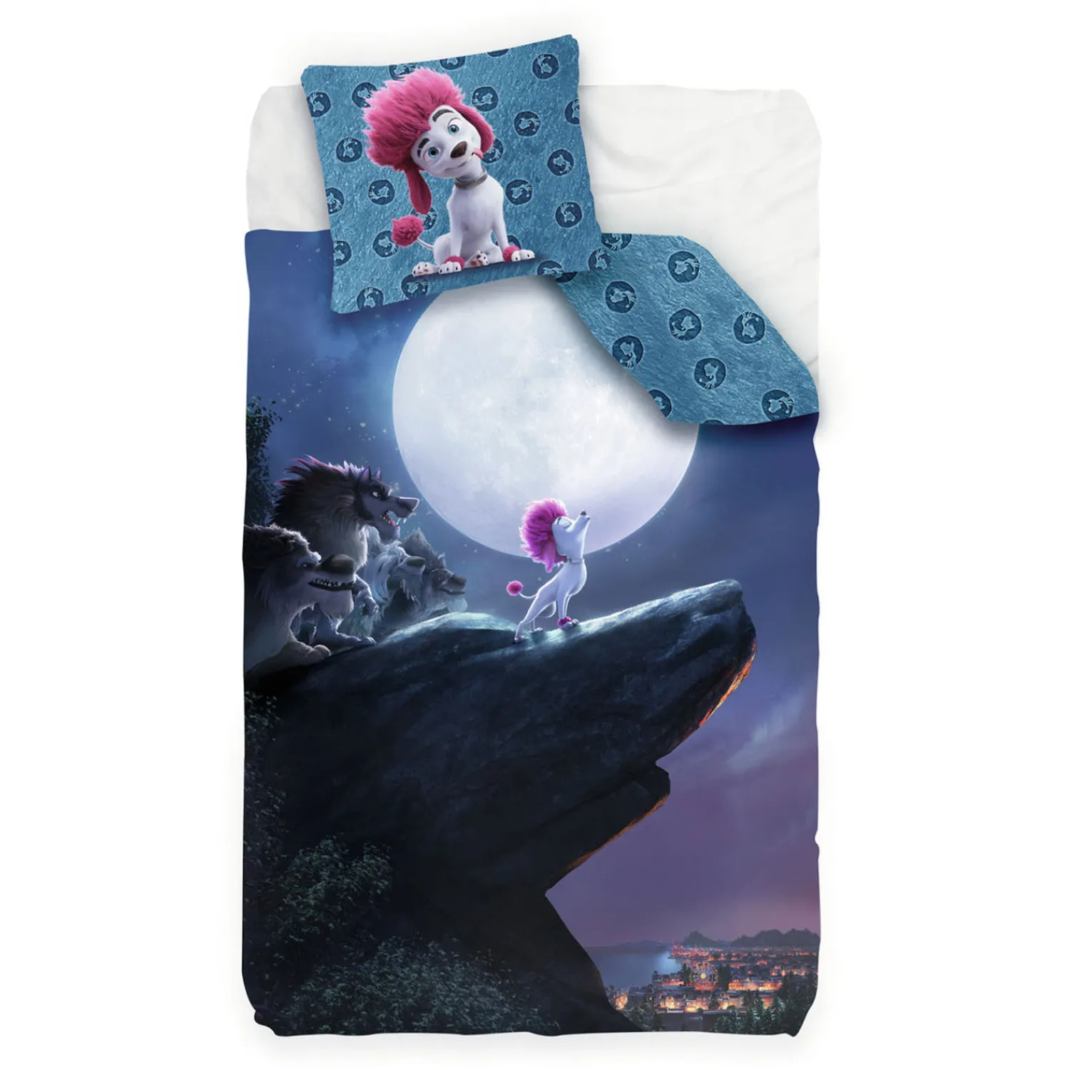 Zelfs weerwolven moeten toch een keer gaan slapen! Onder dit 100% Wolf dekbedovertrek zal je heerlijk slapen. Op de kussensloop staat een afbeelding van Freddy en op het dekbedovertrek zie je Freddy huilen naar de volle maan. Het dekbedovertrek is 200 bij 140 centimeter groot. De bijbehorende kussensloop meet 65 bij 65 centimeter.