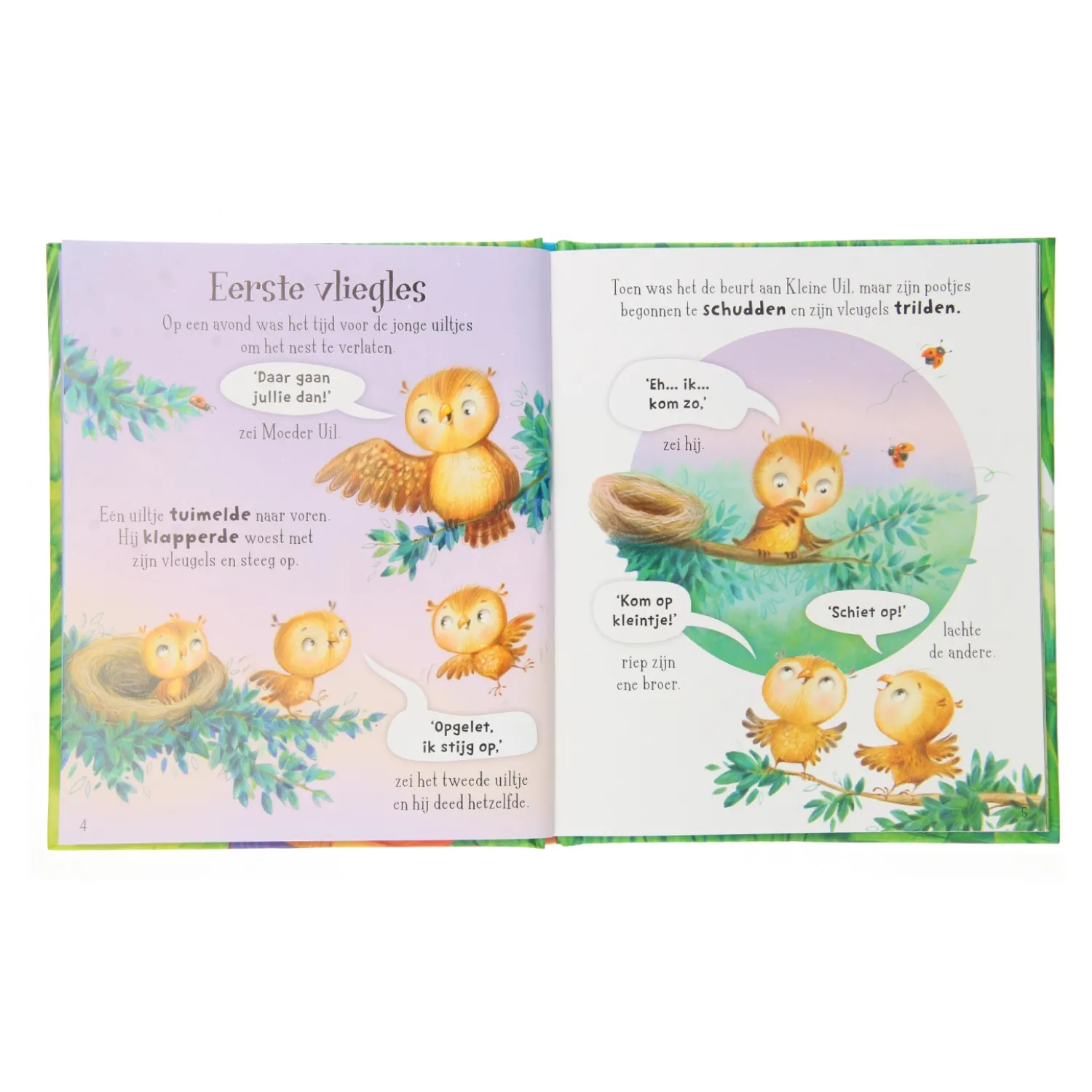Stap in de wonderlijke wereld van schattige dieren met deze mooie verzameling 5-minutenverhaaltjes over dieren. Ontmoet Welpje terwijl hij zijn leeuwenbrul oefent, ga mee met Beer terwijl hij zijn vrienden helpt, ontdek of Kleine Uil ooit durft te gaan vliegen en nog veel meer.