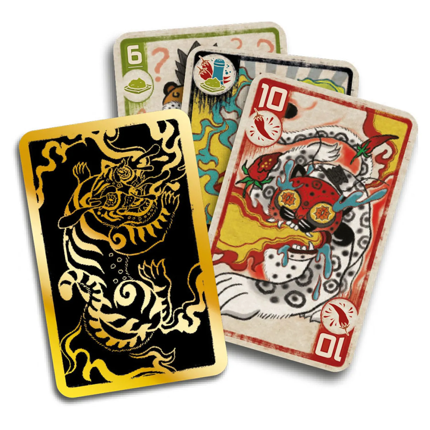 Drie grote katten die niet meer wilden vechten om wie de baas is, spraken af om het gevecht te staken en hun negen levens op te fleuren met een wedstrijd met hete kruiden. Helaas speelde iedereen al snel vals, dus vonden de katten een erg heet, vaak betraand blufspel uit! Het maakt niet uit hoe sterk, oud of stoer je bent, Spicy is een pittig en snel blufkaartspel voor het hele gezin.