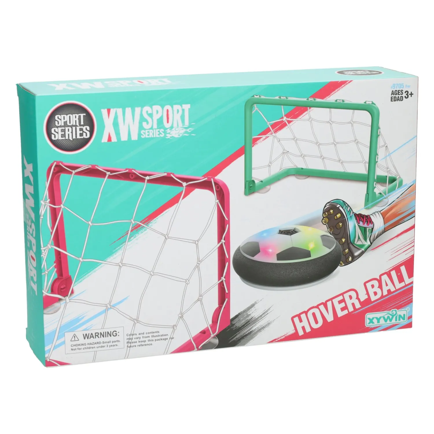 Geschikt voor kinderen vanaf 3 jaar. De airvoetbal wordt geleverd met 2 voetbaldoeltjes. Werkt op 3 AA batterijen (niet inbegrepen).