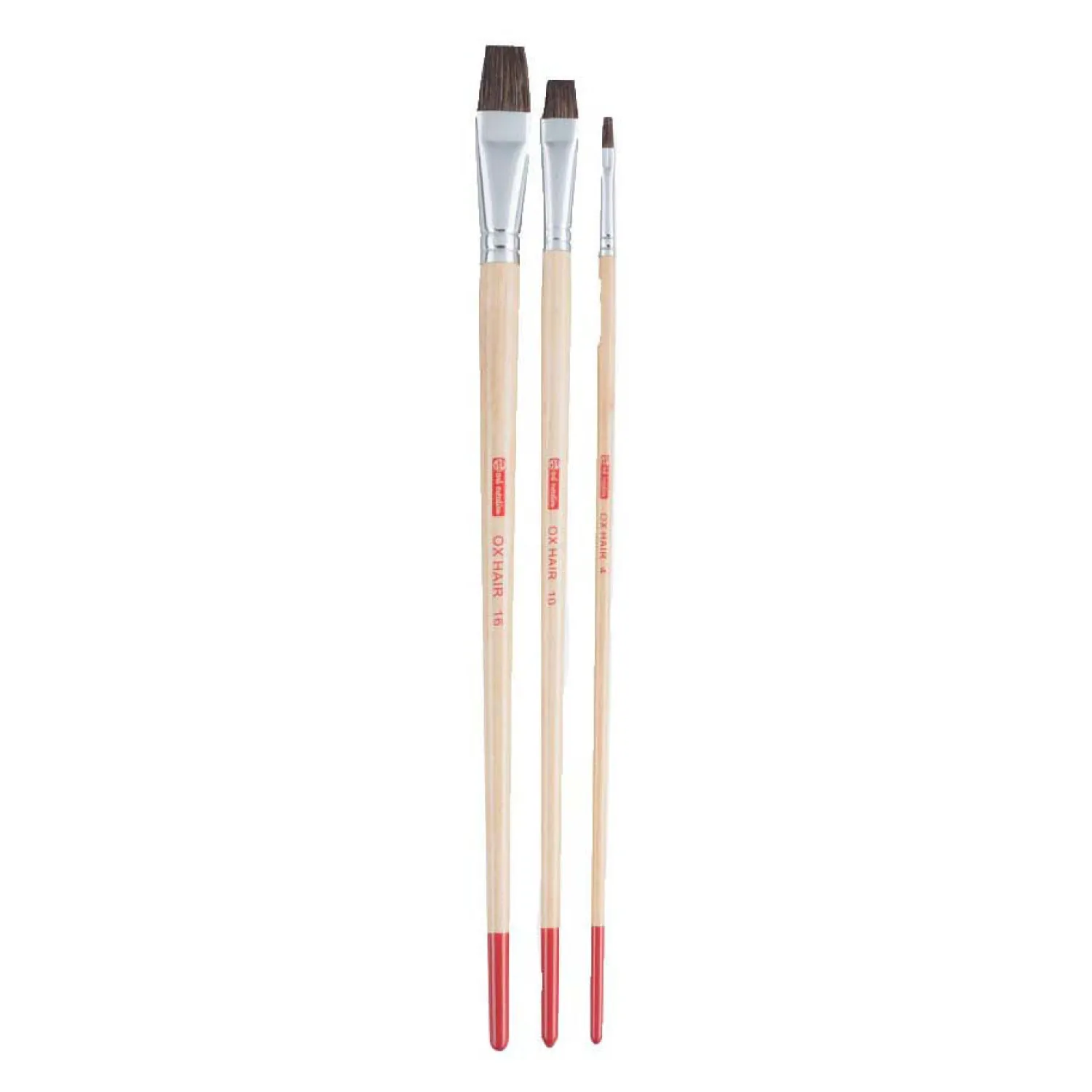 Deze set met 3 penselen van runderorenhaar is geschikt voor olie-, acryl- en plakkaatverf (gouache). De set bevat de volgende soorten en maten: 3 platte penselen in maat 4, 8 en 16.