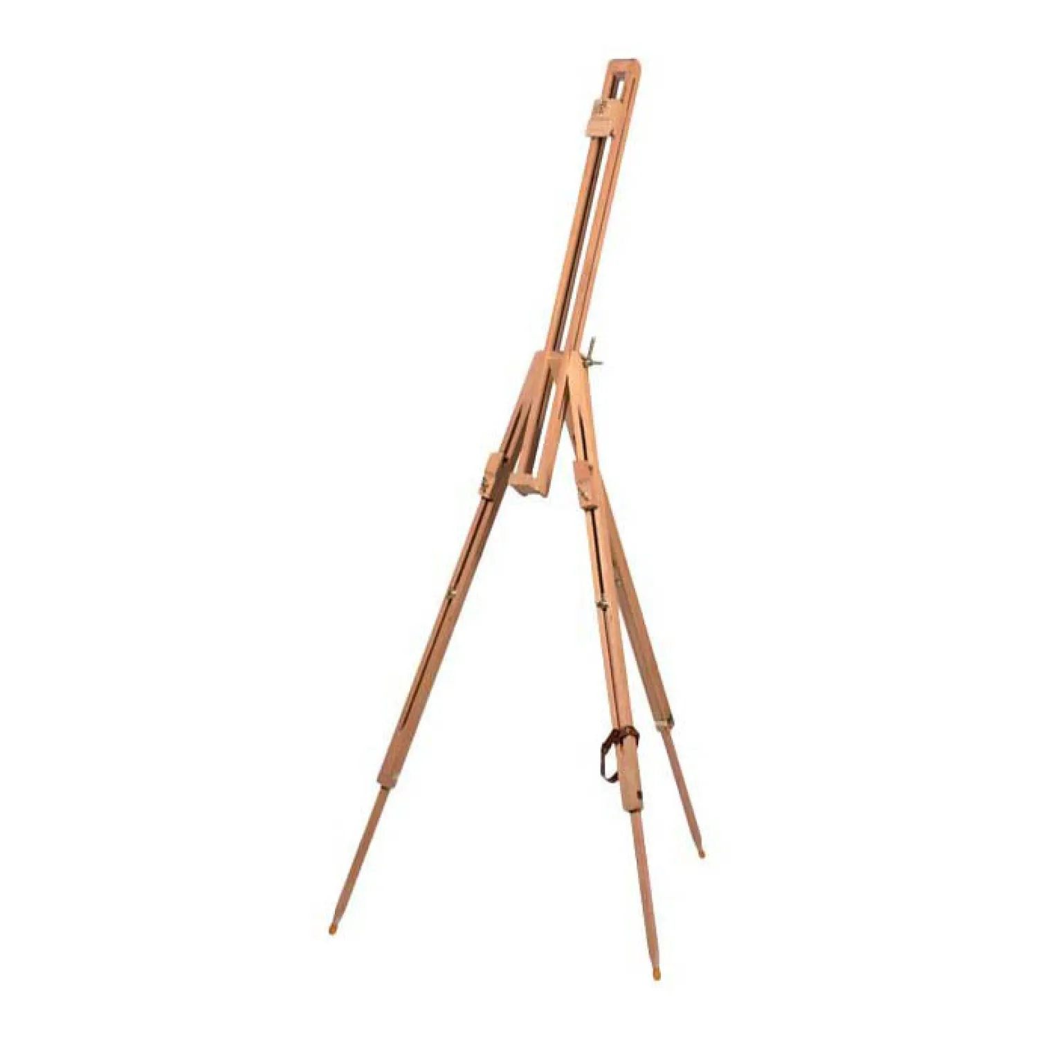 Stevige beukenhouten veldezel met diverse instelmogelijkheden, waarmee zowel horizontaal als verticaal gewerkt kan worden. Zeer compact om mee te nemen en makkelijk draagbaar.