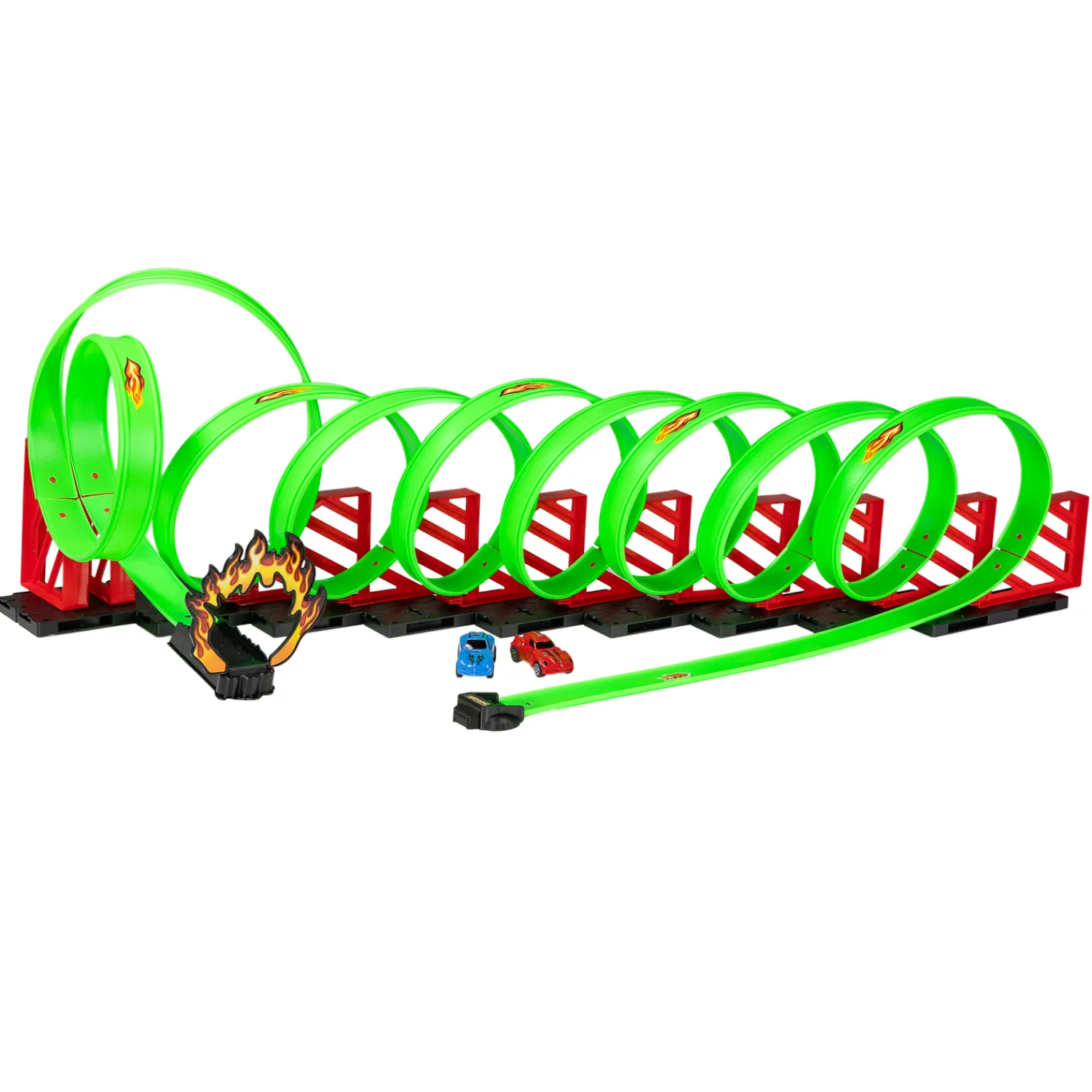 •Racebaan met 8 loopings en 360 graden draaiactie