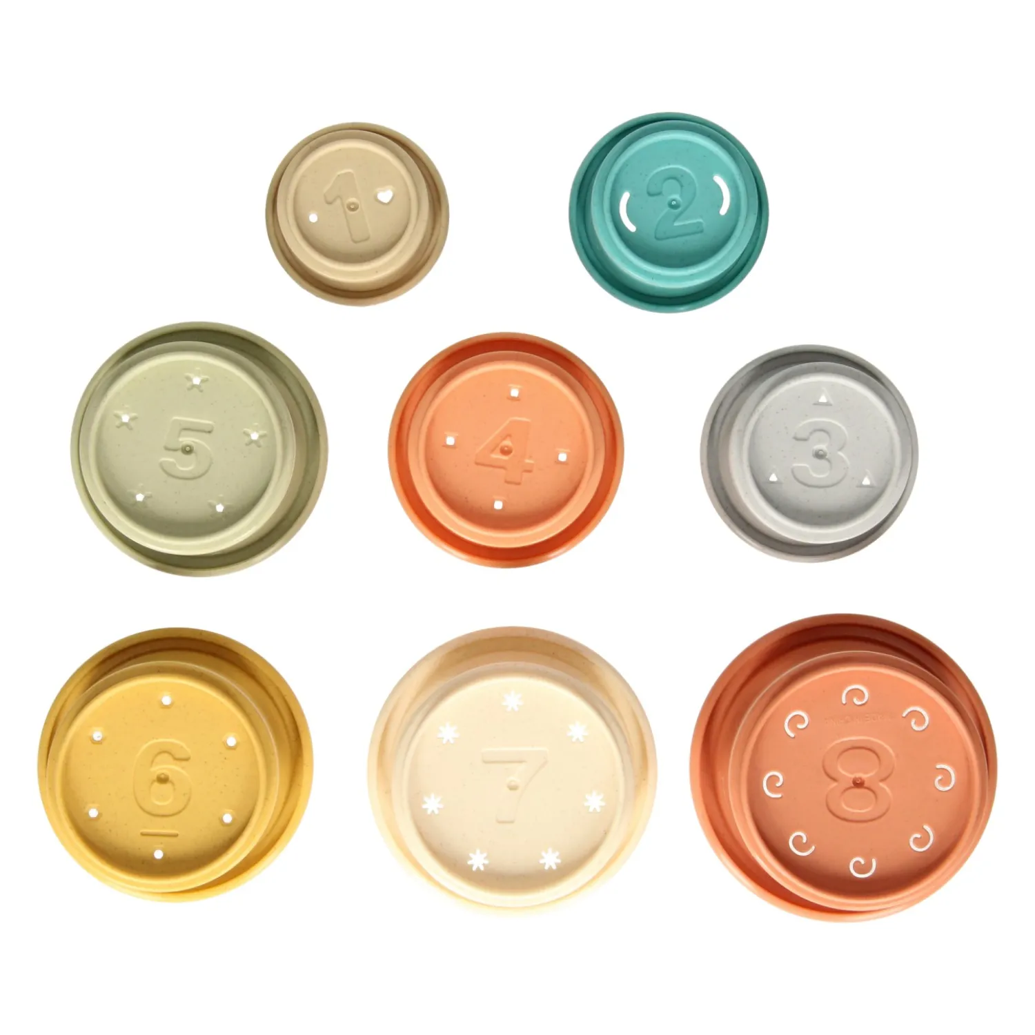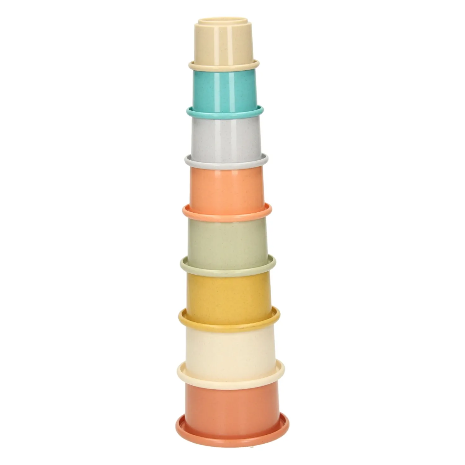 Baby Badset in vormenbox. De set bestaat uit een vormenstoof met blokken, drie badbootjes, en stapelbekers die voorzien zijn van gaatjes waar het doorheen kan stromen. Voor uren waterplezier!