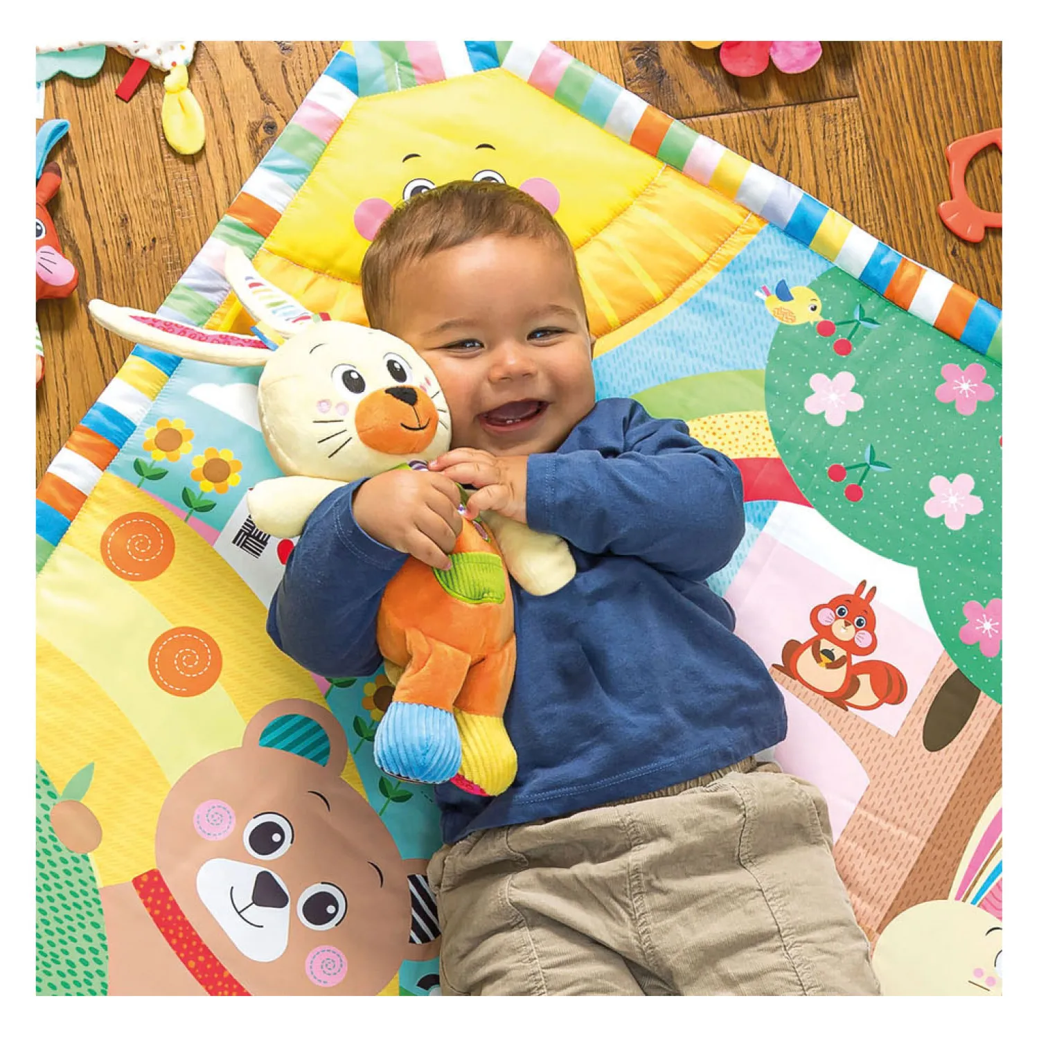 Een heel zacht knuffelkonijn, ontworpen voor de allerkleinsten, om ze te laten spelen in een wereld vol zachtheid! De knuffel is gemaakt van verschillende materialen voor de multisensoriĆ«le stimulering van het kind en de ontwikkeling van zijn tastzin tijdens de eerste levensfasen. Het perfecte vriendje voor de ontwikkeling van het kind. De zachte knuffel beschikt over een accessoire om op te bijten, ontworpen voor baby’s die tandjes krijgen. Machinewasbaar.