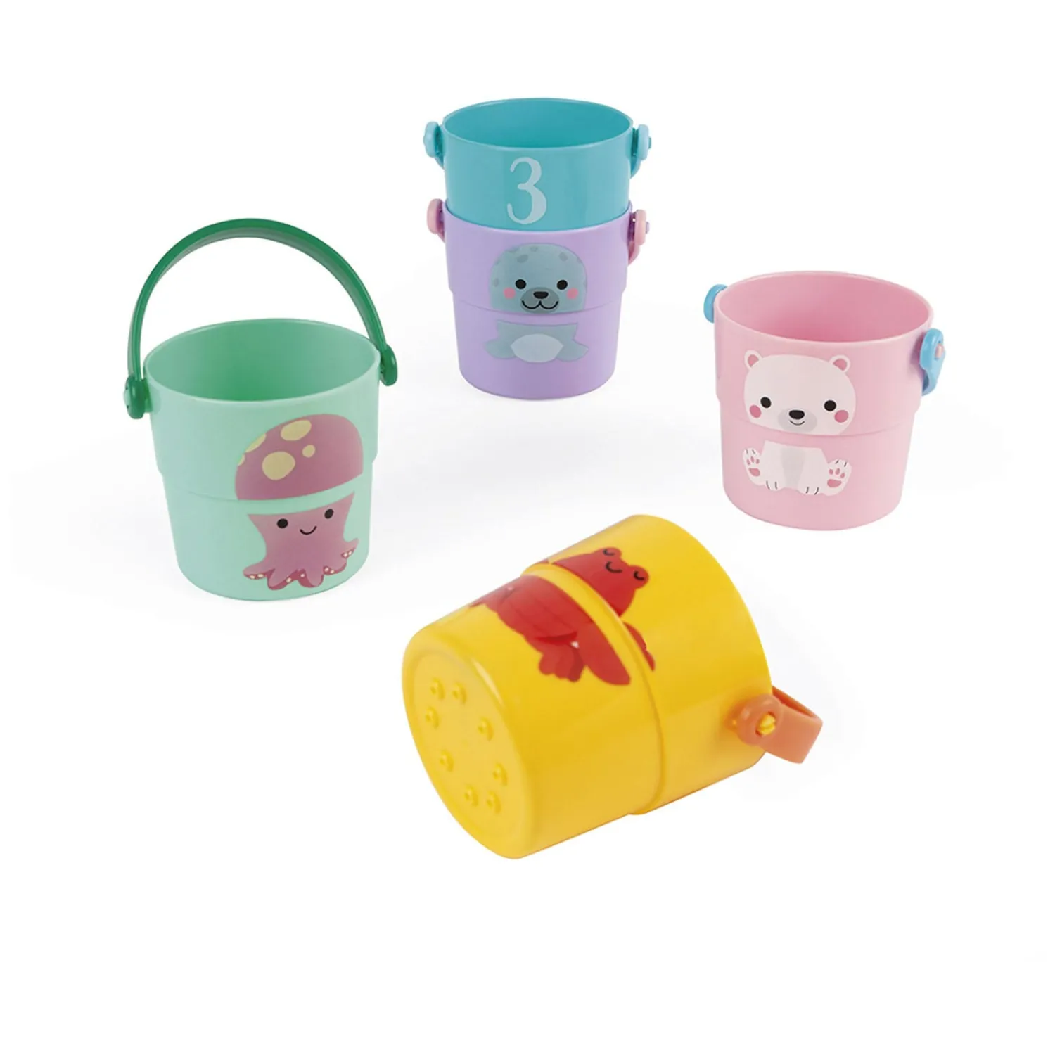 Gemaakt van waterbestendig PVC en geschikt vanaf 10 maanden. Afmetingen: 9 x 9 x 11,5 cm.