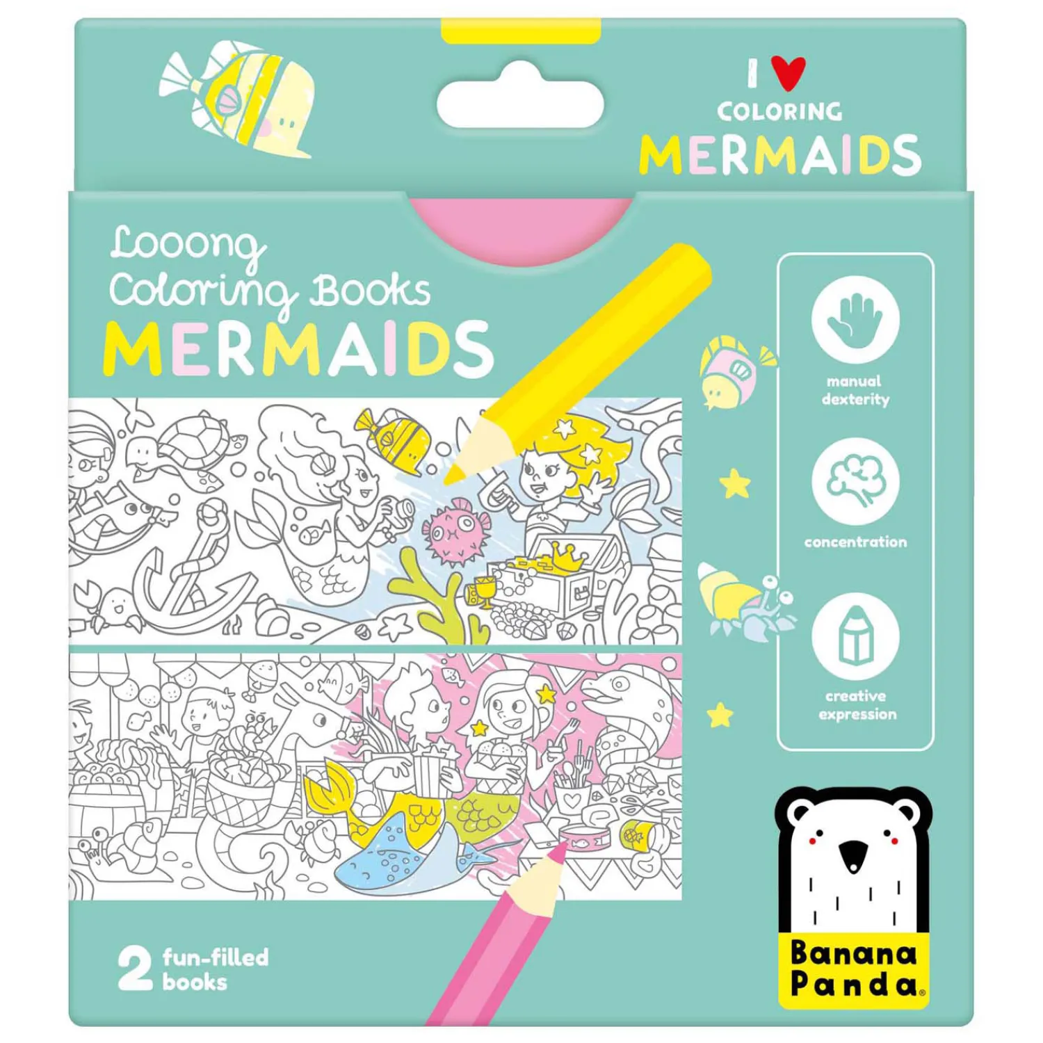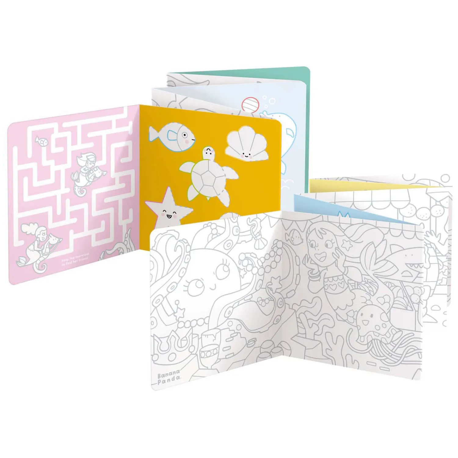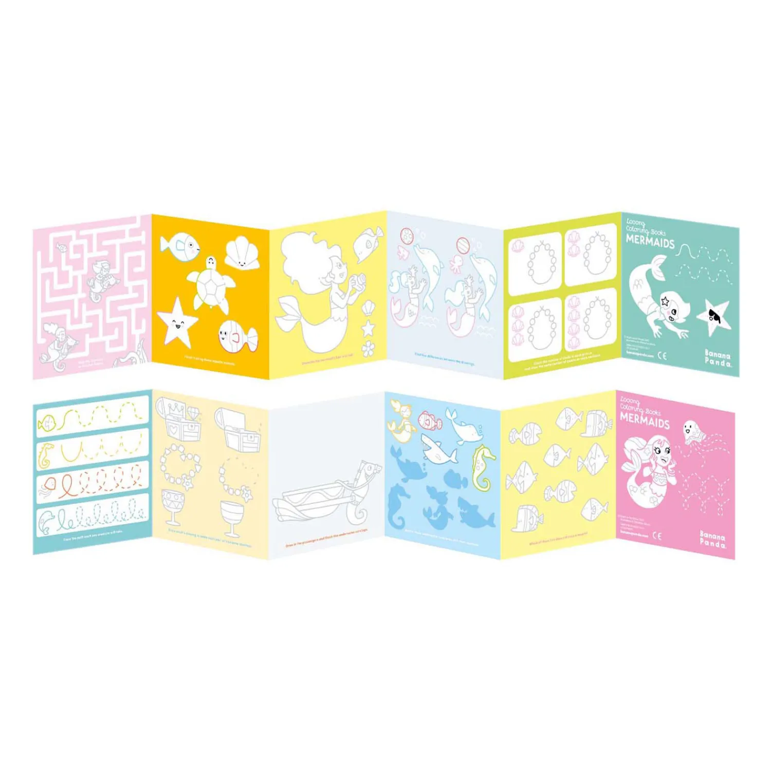 Deze creatieve set bevat 2 lange (95 cm!) accordeonboeken met 2 panoramafoto’s om in te kleuren, samen met talloze creatieve en leerzame oefeningen.