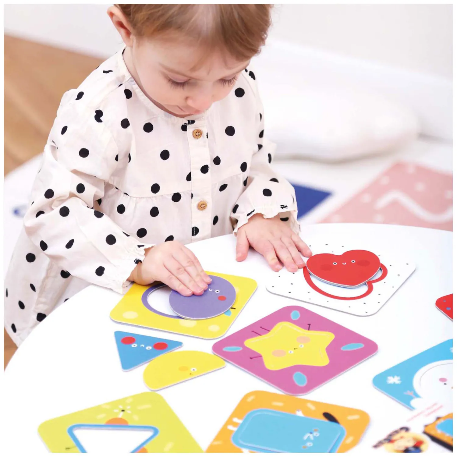 Deze creatieve set bevat acht stevige puzzels die perfect zijn voor kleine handjes. Elke match motiveert om een fascinerende ontdekkingsreis voort te zetten. Het speelgoed bouwt voort op het concept van populair sorteerspeelgoed dankzij kleurrijke illustraties. Eenvoudige, leerzame puzzels helpen peuters de eerste vormen te begrijpen en te leren, en ontwikkelen hun motoriek.