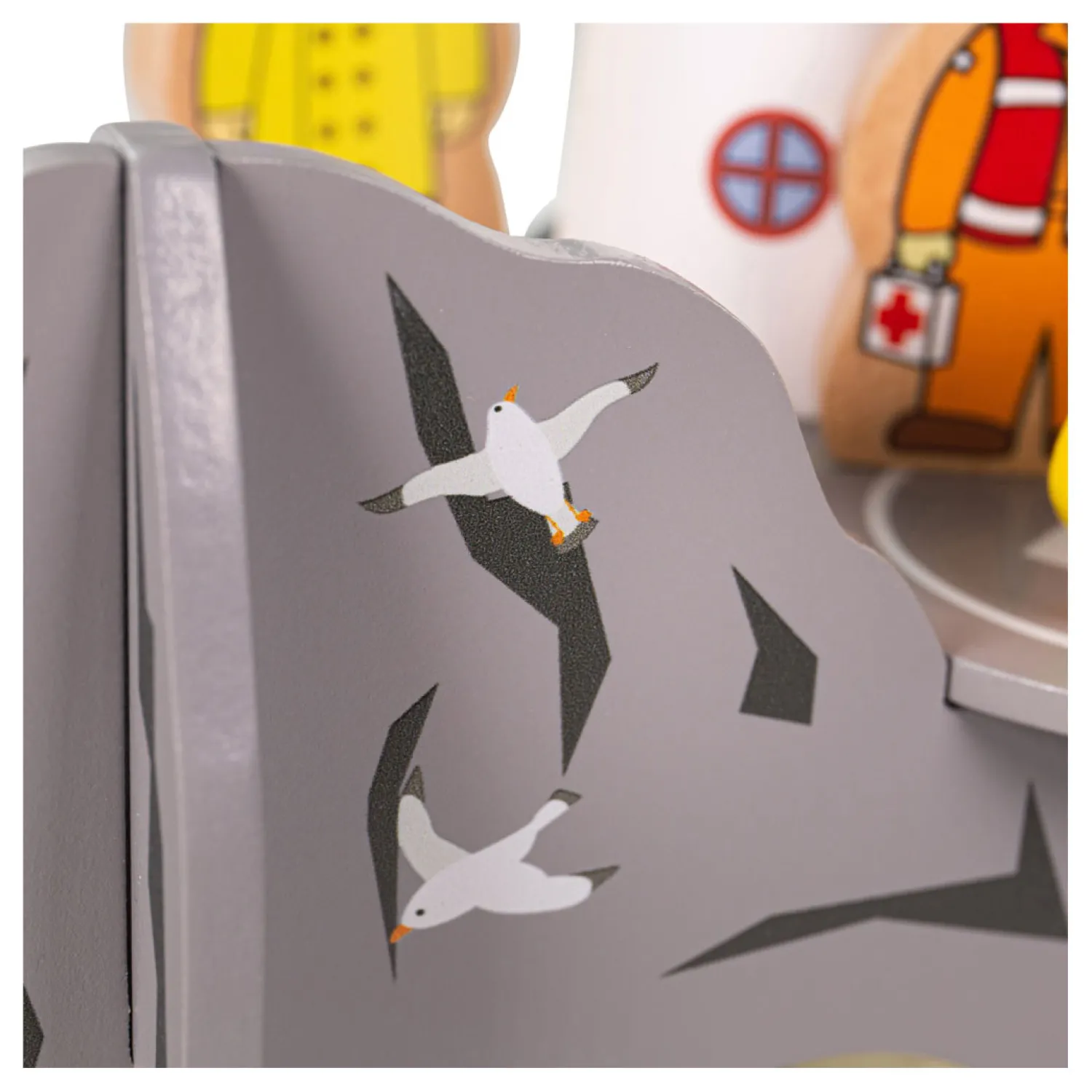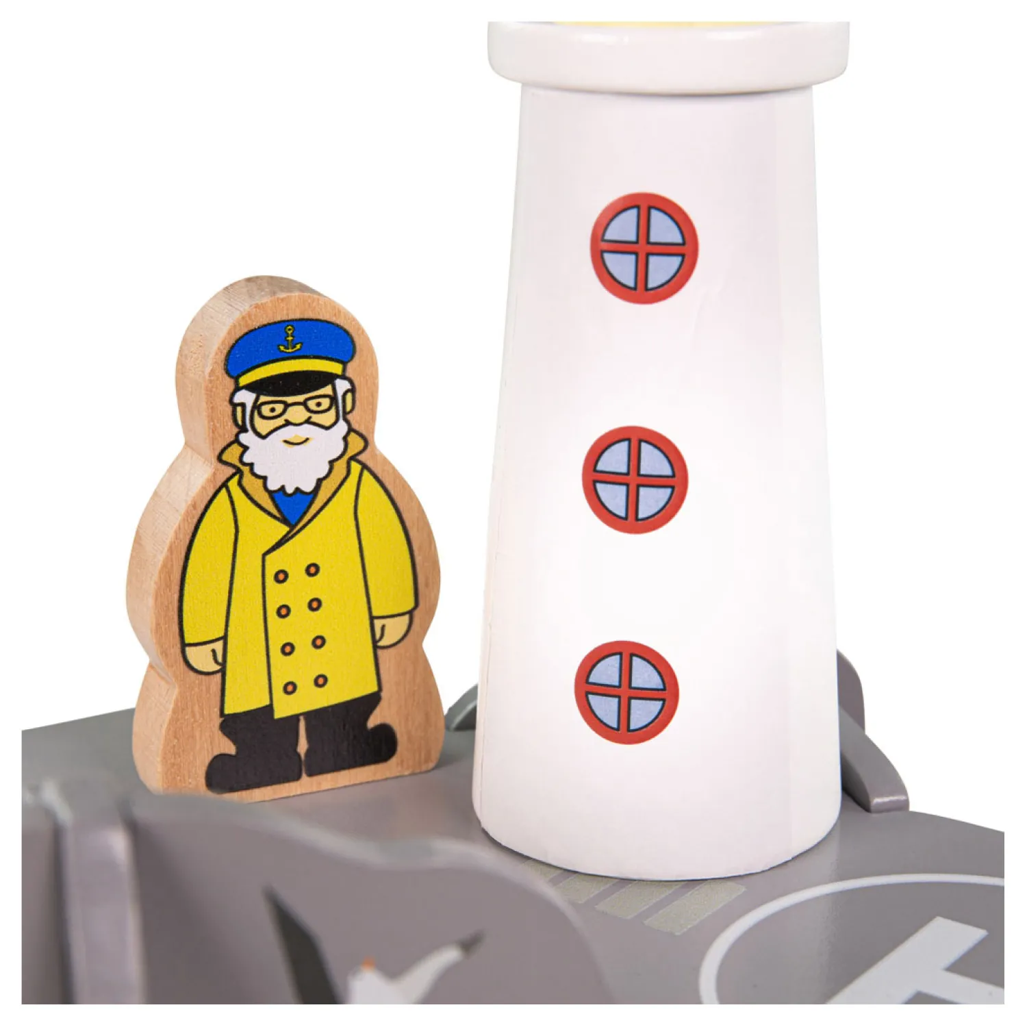 Voeg de vuurtoren toe als uitbreiding aan je houten treinbaan. Laat de speelgoedtrein onder de vuurtoren doorrijden om veilig naar de andere kant te gaan. Liefhebbers van minitreinen kunnen hun eigen zoek- en reddingsmissie op zee opzetten met de helikopter en het houten spoorwegnet om te helpen.