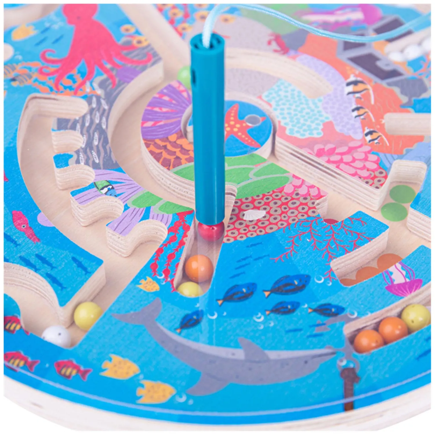 Het spel met zeedierenthema is gemaakt van hoge kwaliteit hout en bewerkt met niet-giftige verf en lak. Geschikt voor kinderen vanaf 3 jaar oud. Afmetingen: 22,5 x 22,5 centimeter.