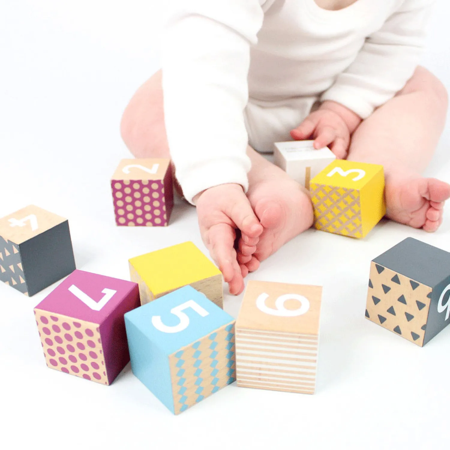 Leren tellen is zo eenvoudig als 1, 2, 3! Laat jonge kinderen kennismaken met cijfers met ons heldere assortiment FSC®-gecertificeerde houten cijferblokken. Deze lichtgewicht en kleurrijke cijferblokken hebben een reeks opvallende tinten en levendige patronen om leren leuk te maken! Het is ook een fantastische manier om kleine paar ogen te boeien! De cijferblokken zijn gemaakt van FSC®-gecertificeerde materialen (FSC® C147826) en zijn gemaakt van hoogwaardig, duurzaam geproduceerd hout. De cijferblokken hebben de perfecte maat om door kleine handjes te worden vastgepakt – het robuuste, gladde hout is sterk genoeg om een paar keer tegen te vallen, maar zacht genoeg om kleine vingers te beschermen tegen splinters. Inhoud 10 cijferblokken in heldere kleuren en patronen van knindvriendelijke verf. Geschikt voor kinderen vanaf 6 maanden.