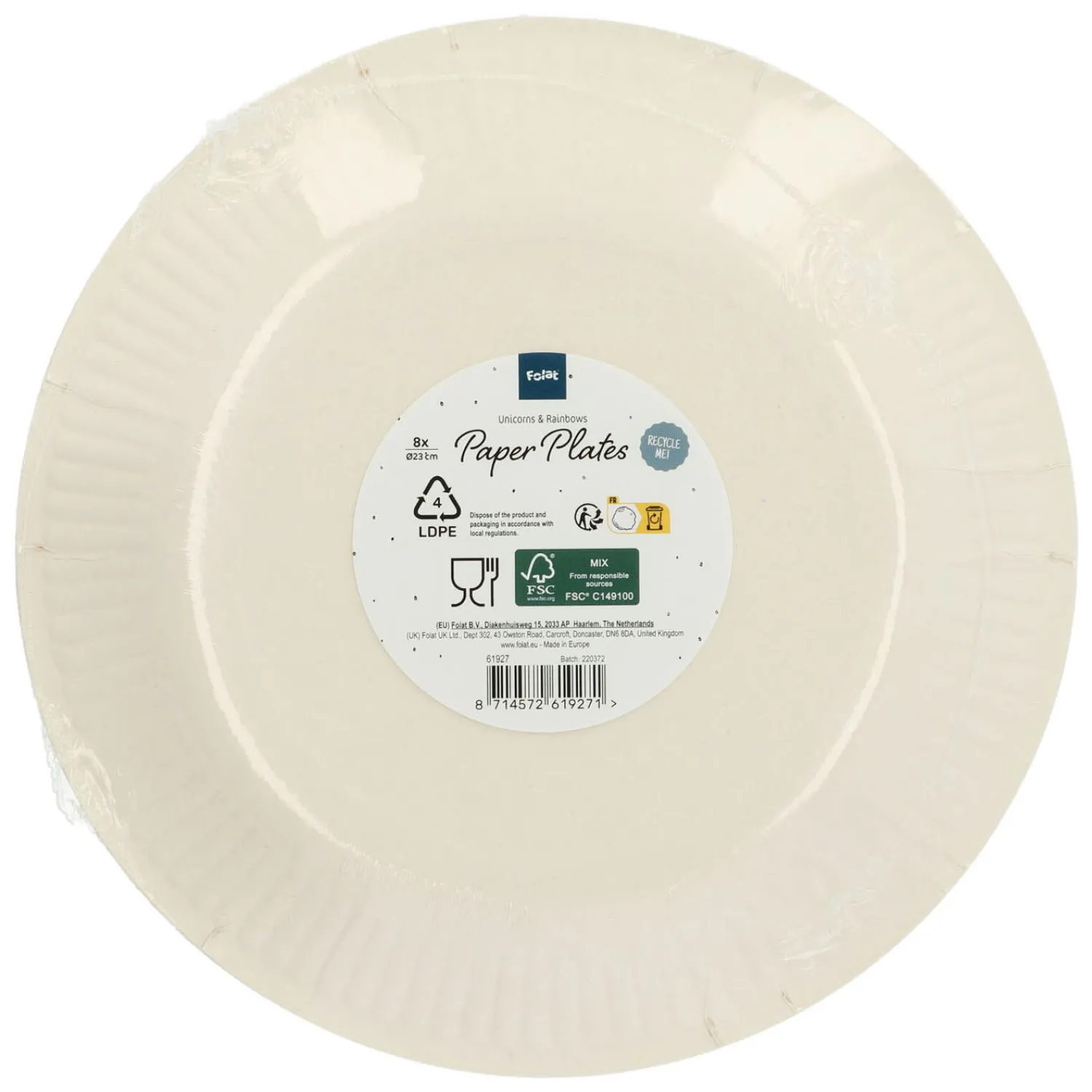 Borden Unicorns & Rainbows 23cm – 8 stuks. Inhoud: 8 borden. Kleur: Meerkleurig. Het bord heeft een diameter van 23 cm en is gemaakt van FSC®-gecertificeerd papier.