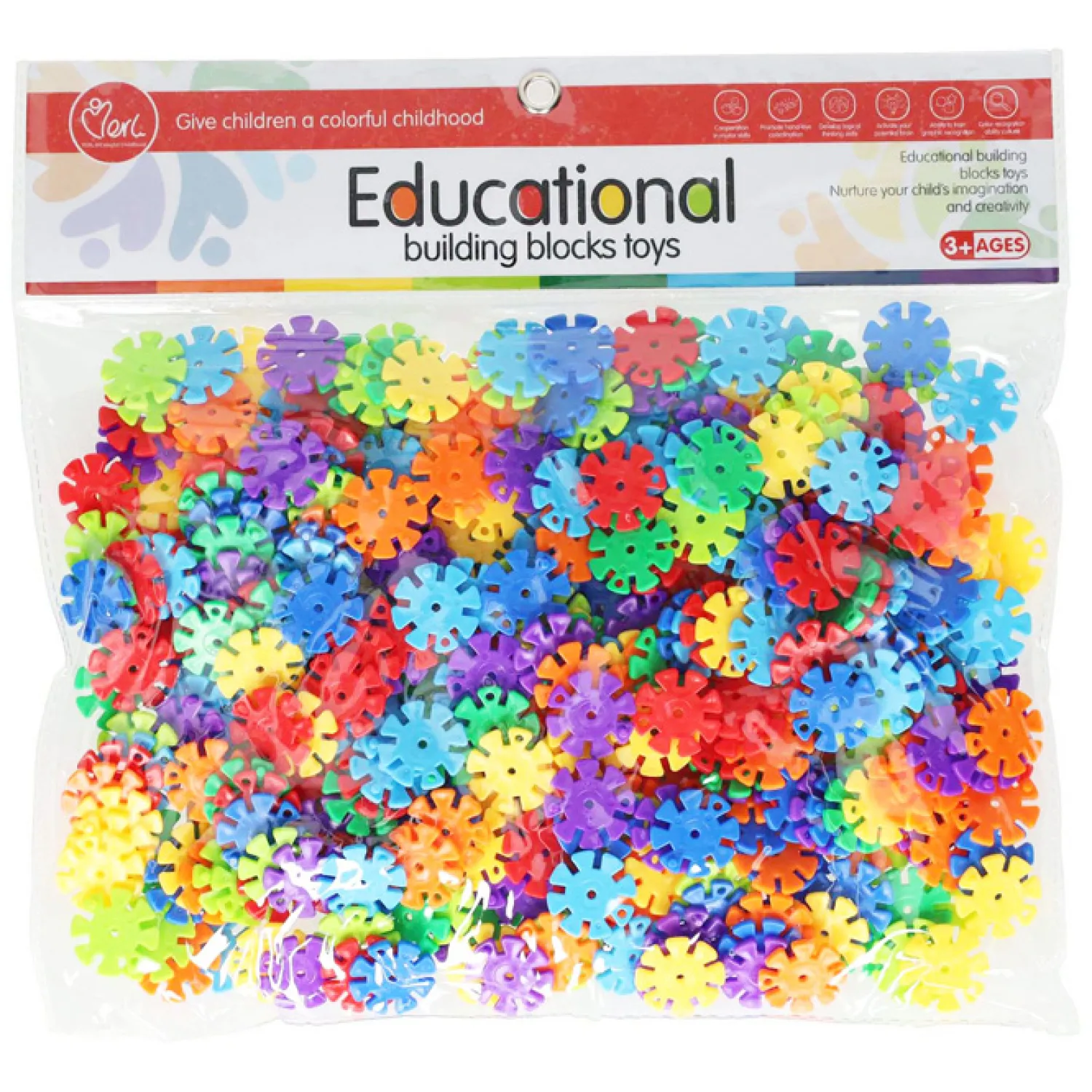 De bouwschijfjes zijn gemaakt van kunststof en geschikt voor kinderen vanaf 3 jaar oud.
