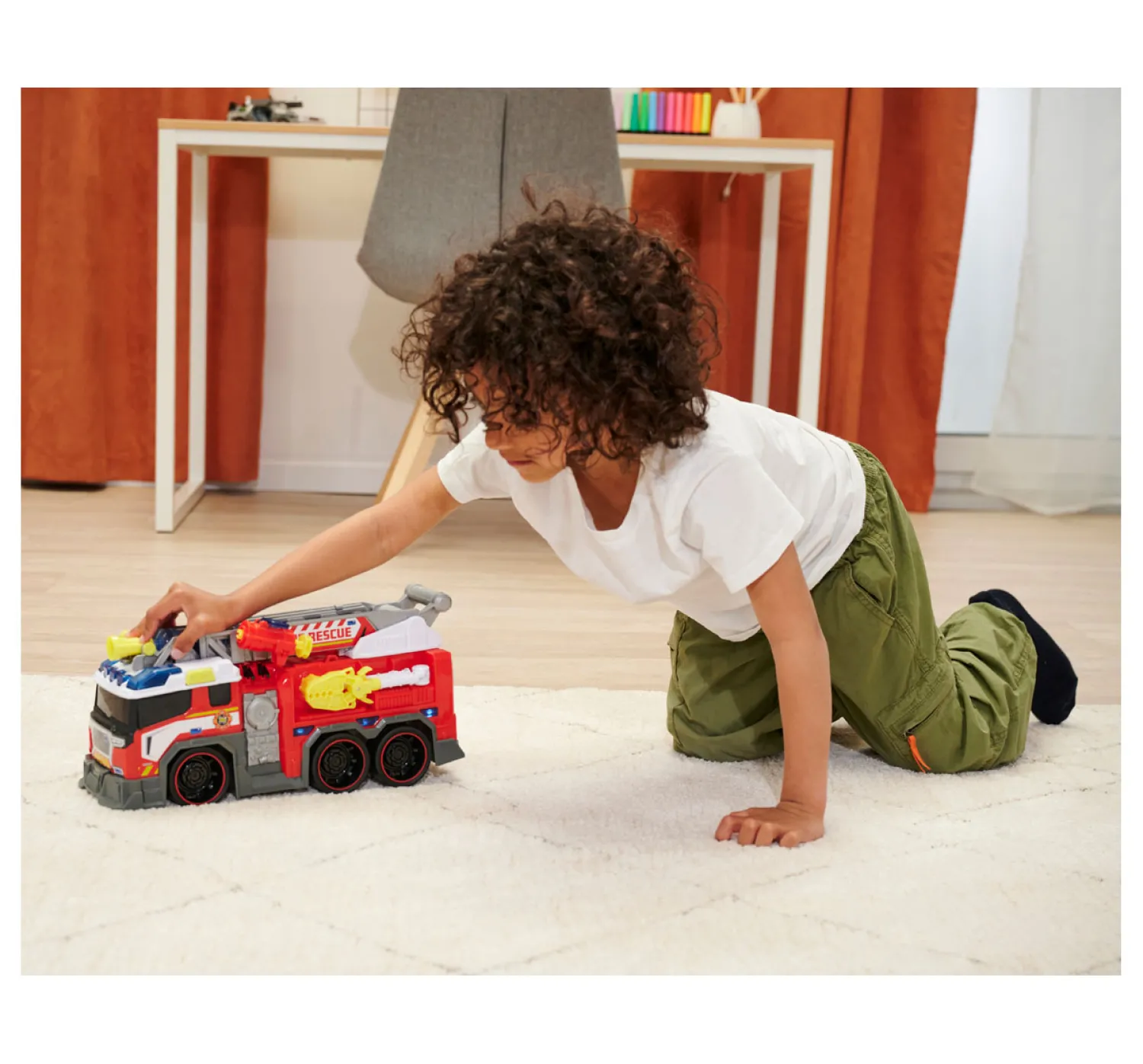 Met zwaailichten en een realistische sirene is deze brandweerwagen van 37,5 x 13,5 x 18,5 cm volledig uitgerust voor elke reddingsmissie: