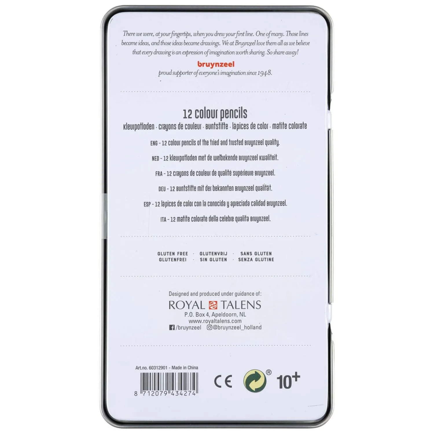 12 verschillende kleurpotloden met de welbekende Bruynzeel-kwaliteit. De potloden zijn gemaakt van hoogwaardige pigmenten, zodat de potloden een mooie kleurweergave hebben en gemakkelijk met elkaar te mengen zijn. Dankzij de kern van 2,9 mm geniet je van extra lang kleurplezier. Alle potloden van Bruynzeel zijn glutenvrij en met zorg vervaardigd uit verantwoord verkregen hout.