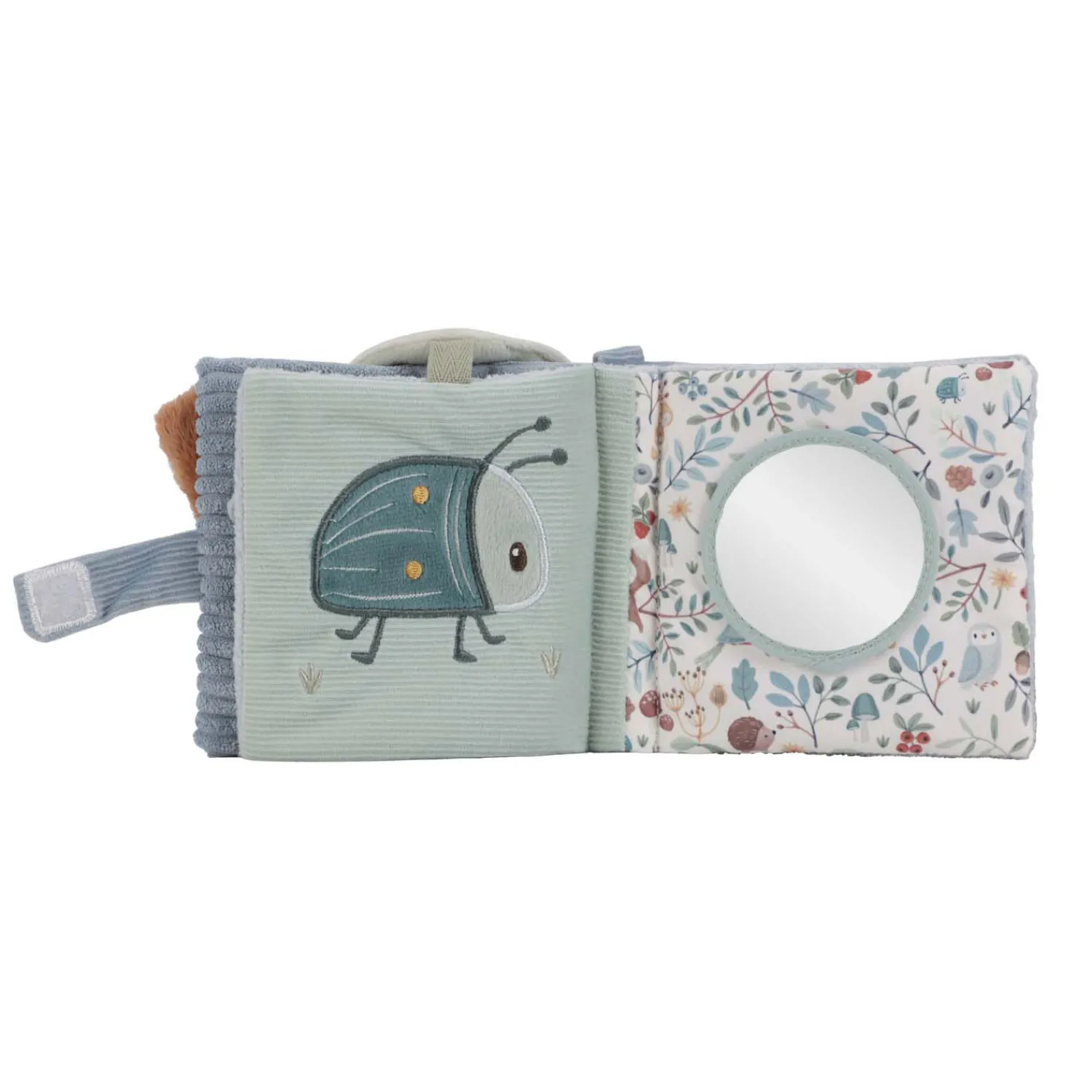 Neem een kijkje in de betoverende wereld van Forest Friends. Dit touch & play buggyboekje wordt ongetwijfeld jouw kindjes favoriete speeltje voor onderweg. De leuke labels, kreukeltexturen en het spiegeltje stimuleren de zintuigen terwijl je kindje de pagina’s één voor één ontdekt. Met de lus maak je het boekje makkelijk aan de kinderwagen vast zodat het niet kwijtraakt onderweg.