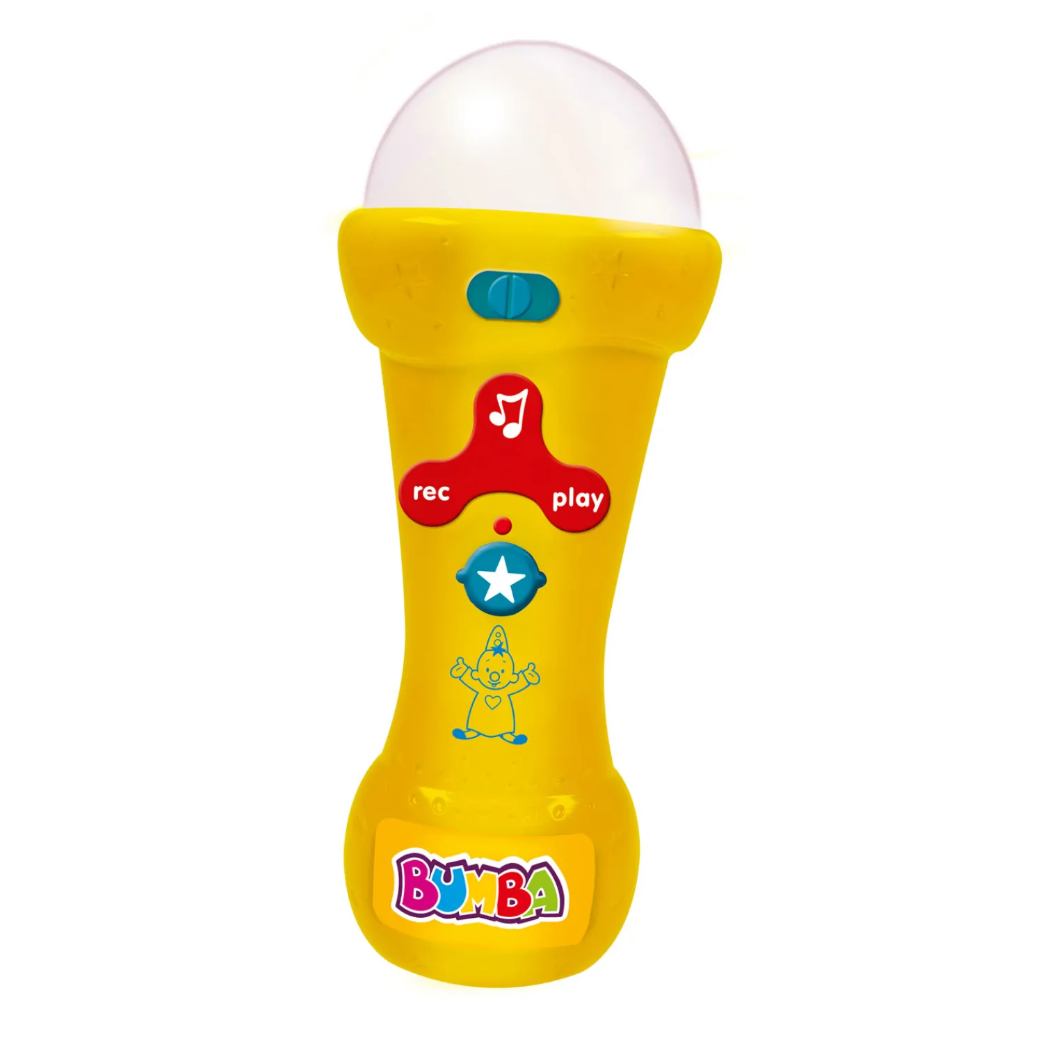 Deze microfoon van Bumba (20 cm) is een feest voor kleine sterren met grote ambities! Laat jouw kind liedjes in zingen én die ook opnemen om ze daarna opnieuw te beluisteren. Lekker meezingen met Bumba? Ook dat kan, want de microfoon bevat een selectie voorgeprogrammeerde liedjes. Werkt op 3 AAA batterijen (inbegrepen).