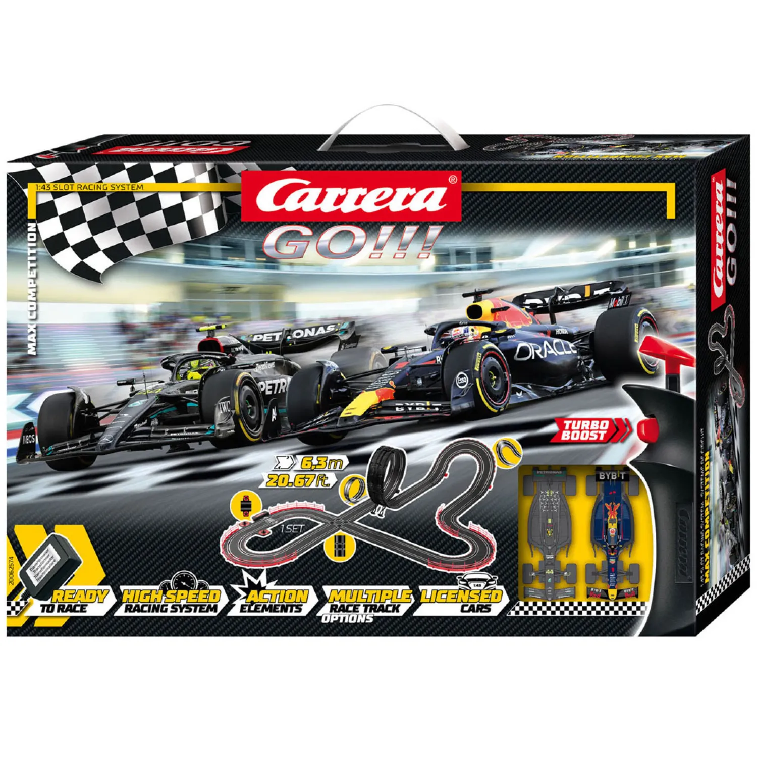 Geschikt voor kinderen vanaf 6 jaar. De set bevat de racebaan en 2 Formule 1 raceauto’s.