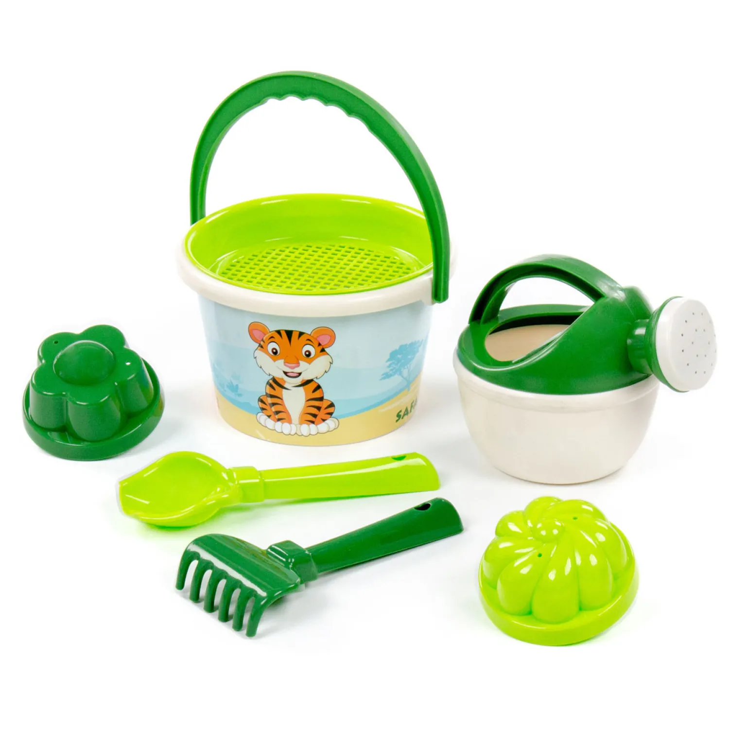 Cavallino strandset safari met een emmer, zeef, gieter, zandbakvormen, schepje en een harkje.