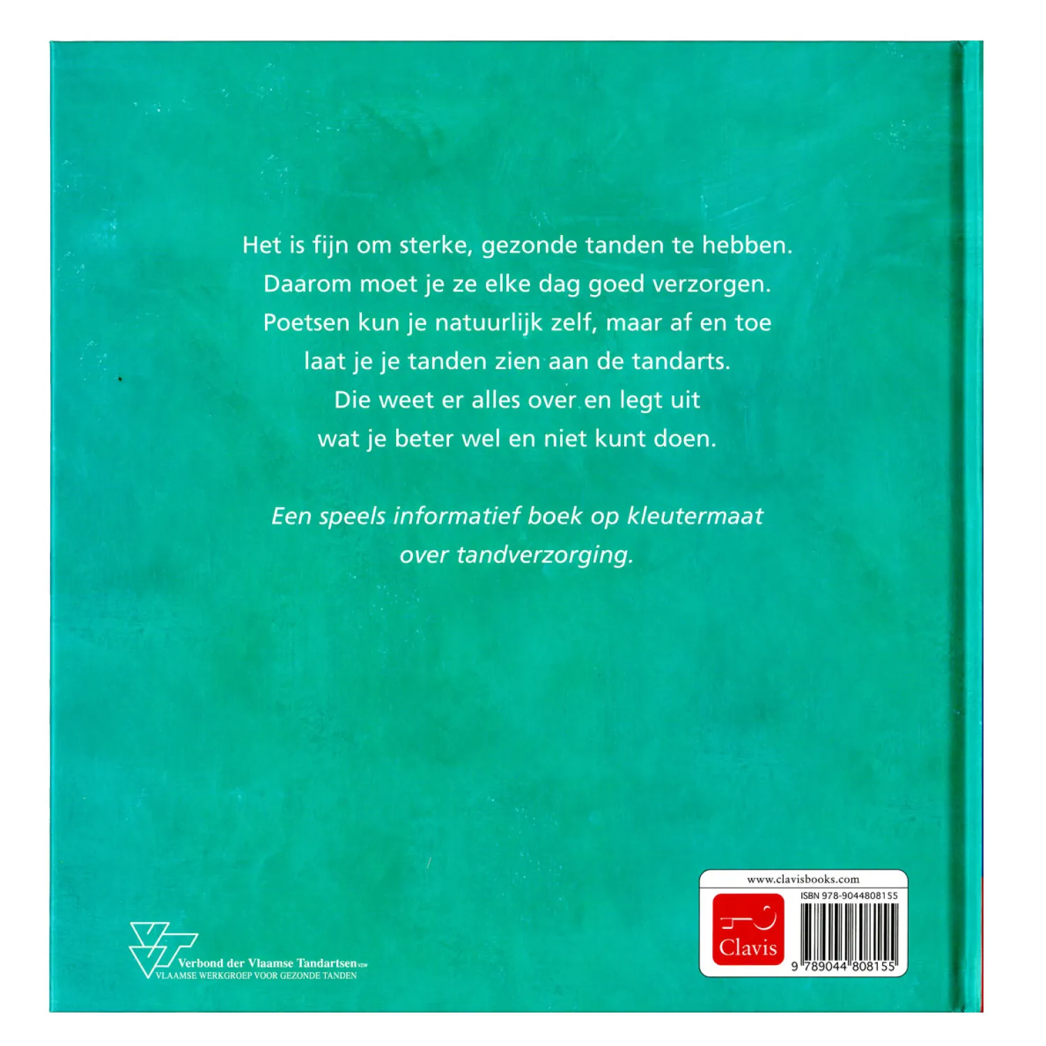 Het is fijn om sterke, gezonde tanden te hebben. Daarom moet je ze elke dag goed verzorgen. Poetsen kun je natuurlijk zelf, maar af en toe laat je je tanden zien aan de tandarts. Die weet er alles over en legt uit wat je beter wel en niet kunt doen. Een speels informatief boek op kleutermaat over tandverzorging. Auteur: Liesbet Slegers. Inhoud: 28 pagina’s. Geschikt vanaf 3 jaar.