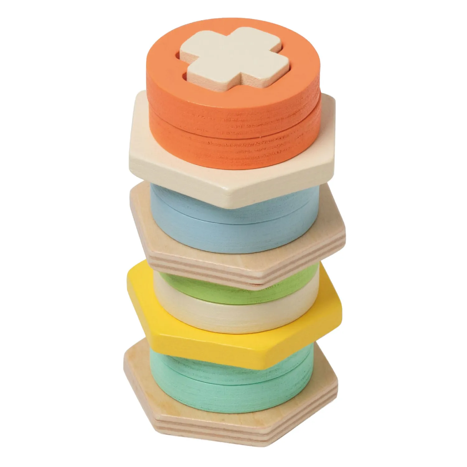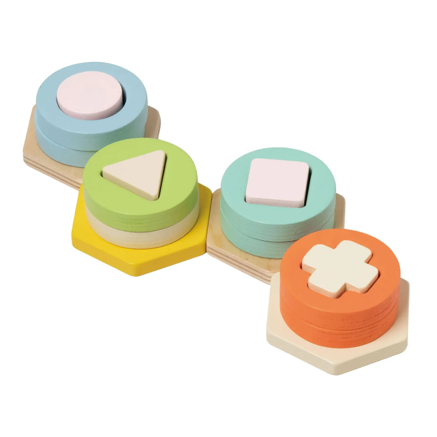 Dit vrolijke vormen sorteer spel is een leuke manier voor kinderen vanaf 2 jaar om kleuren en vormen te leren! De mooie houten vormen moeten op de juiste vorm gestapeld worden. Het spel bevat 4 verschillende kleuren en vormpilaren, met 8 unieke vormblokken. Jonge kinderen leren zo niet alleen de vormen en kleuren, maar ook hun hand-oog-coördinatie en fijne motoriek.