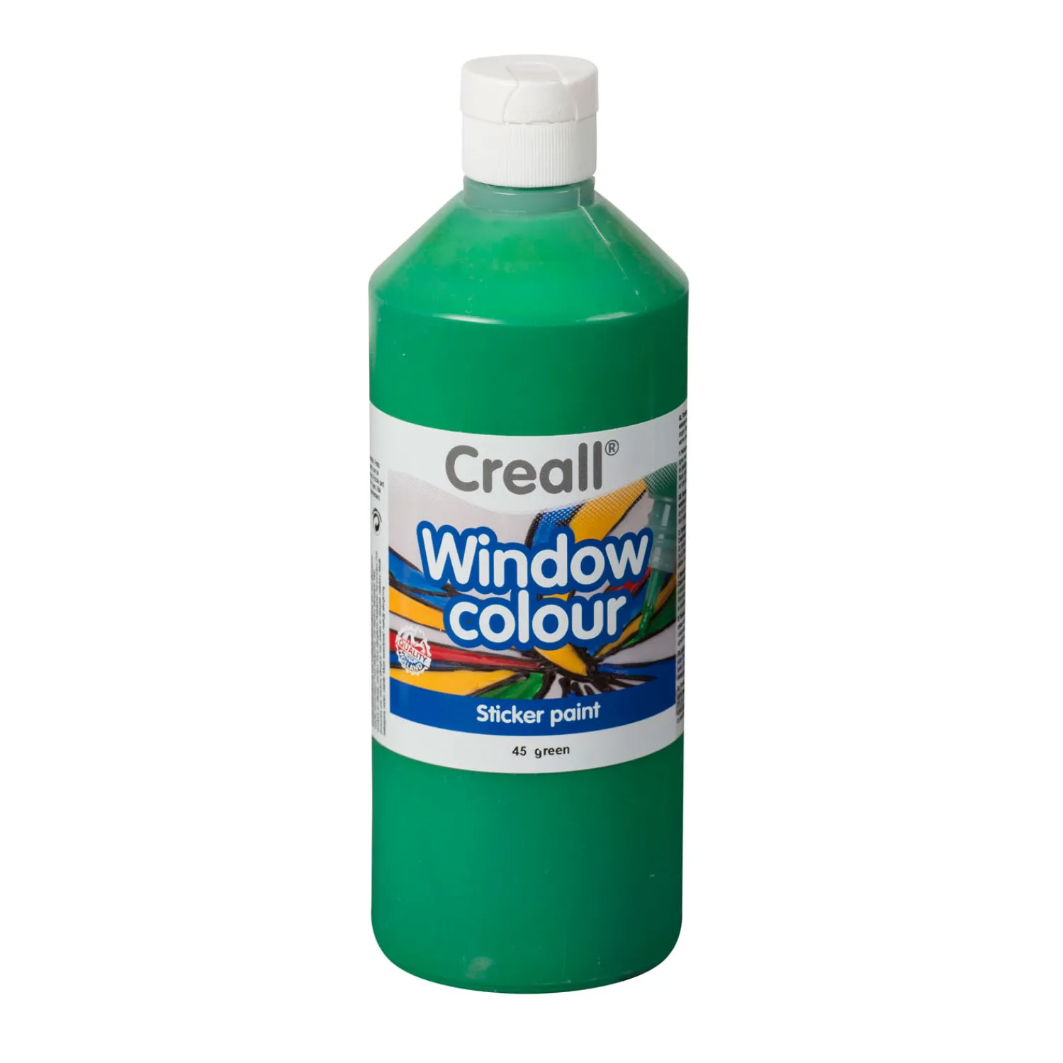 Groene Creall Raamverf wordt geleverd in een fles van 500 milliliter.