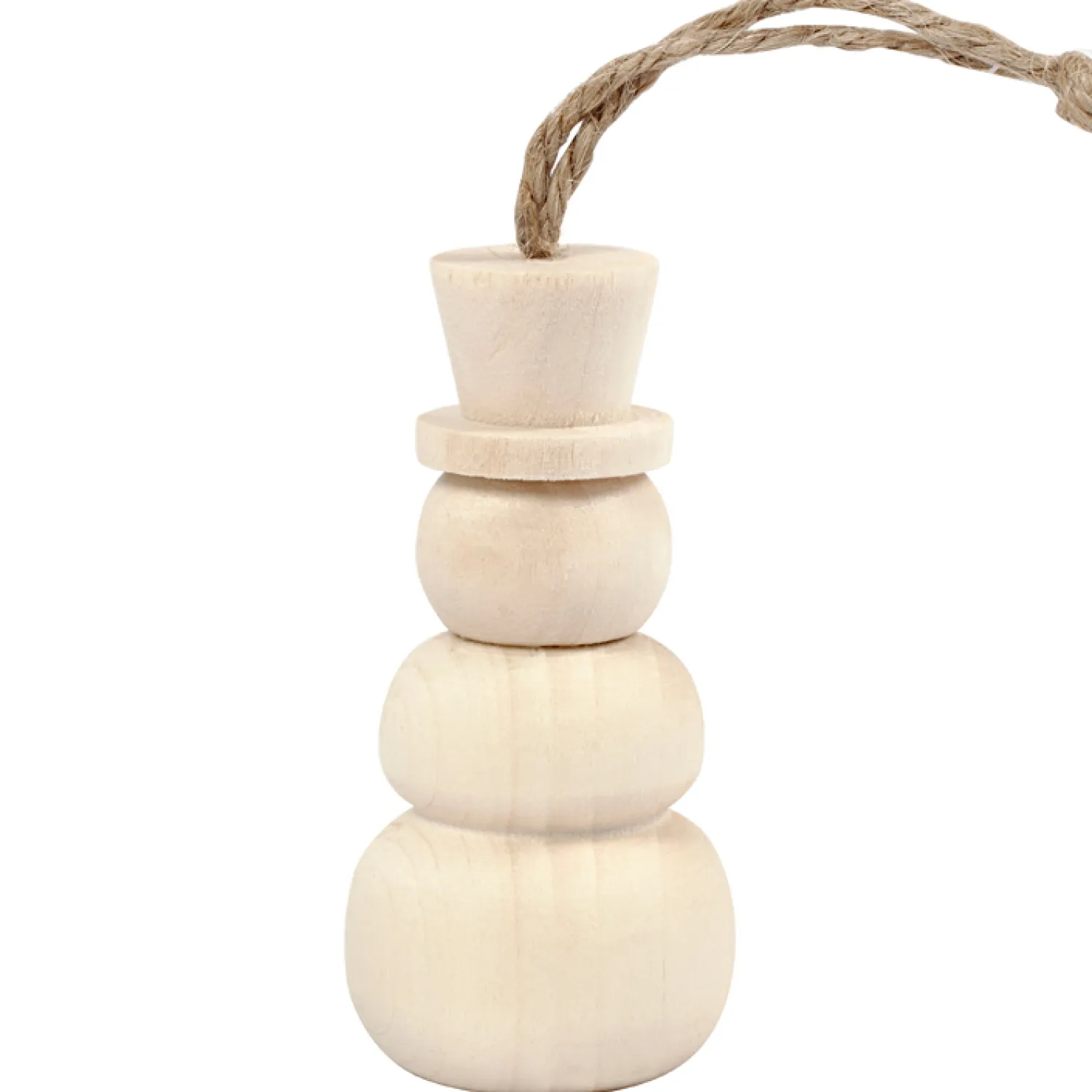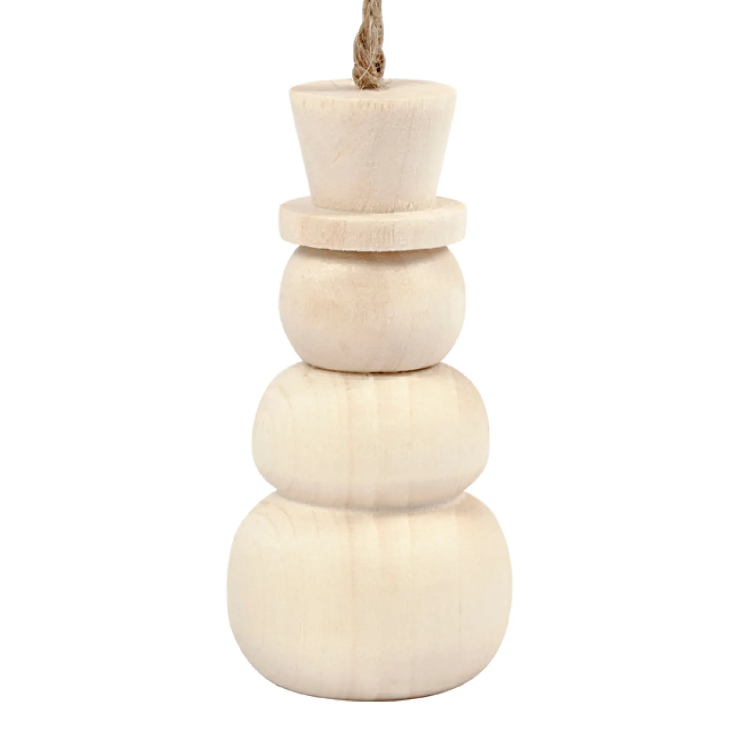 Versier je eigen sneeuwpop. Is jou kerstballen collectie nog niet compleet? Dan kan de houten sneeuwpop daar verandering in brengen. Door de sneeuwpop te versieren met verven, kleuren en plakken, creëer je een originele kersthanger. Bovenaan de sneeuwpop is een handige lus bevestigd om deze op te hangen.