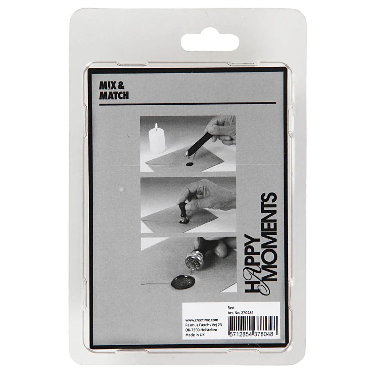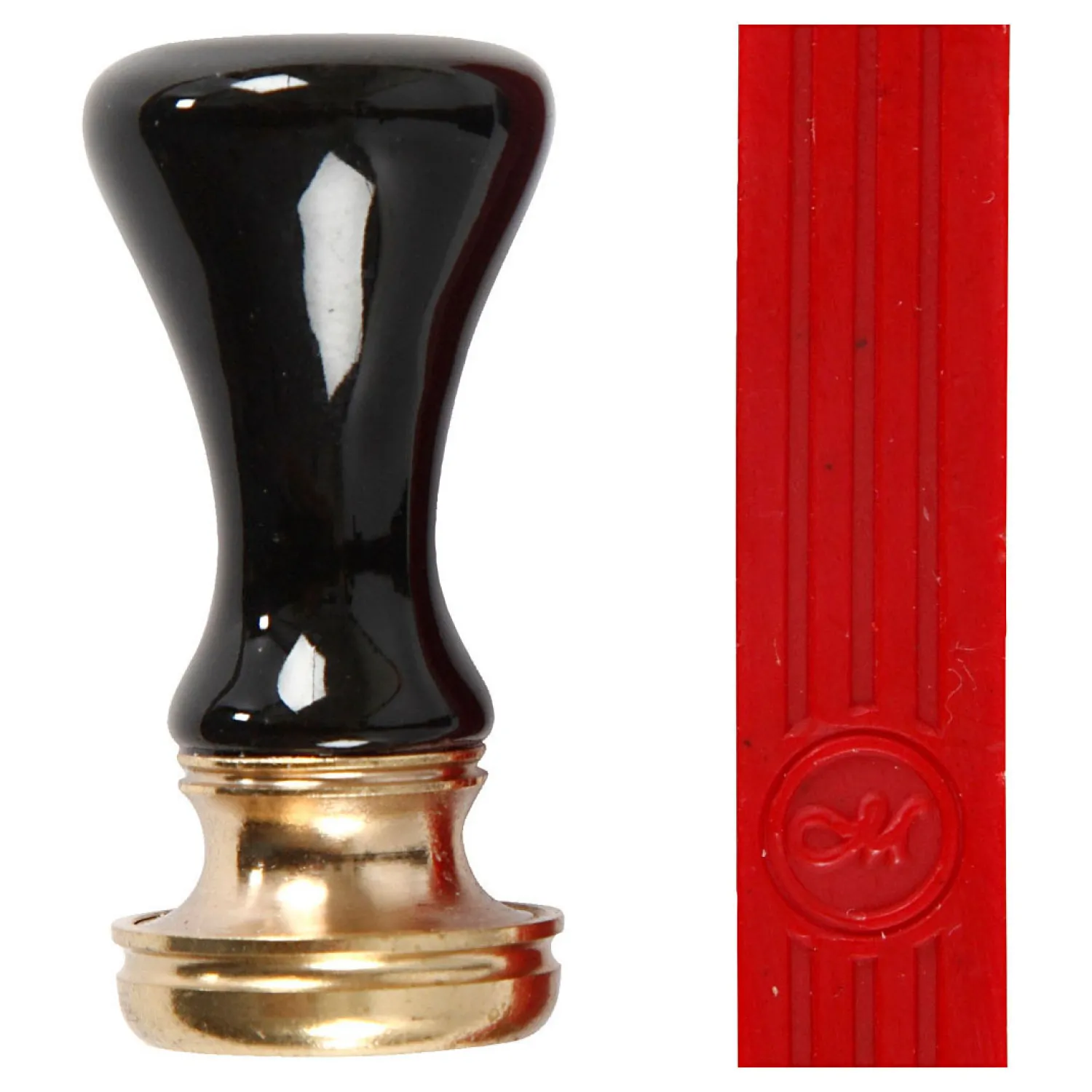 Starterset met rode zegelwas met een lont, handvat en zegel met motief van een lauwerkrans. De zegelwas wordt gesmolten en gedruppeld op de plek die u wilt decoreren. Druk daarna het motief in de warme was. Genoeg voor ca. 10 zegels