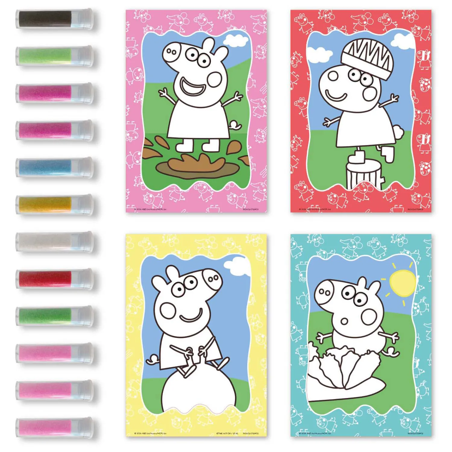 De set bevat 4 afbeeldingen van Peppa Pig en verschillende kleuren zand. Geschikt voor kinderen vanaf 3 jaar.