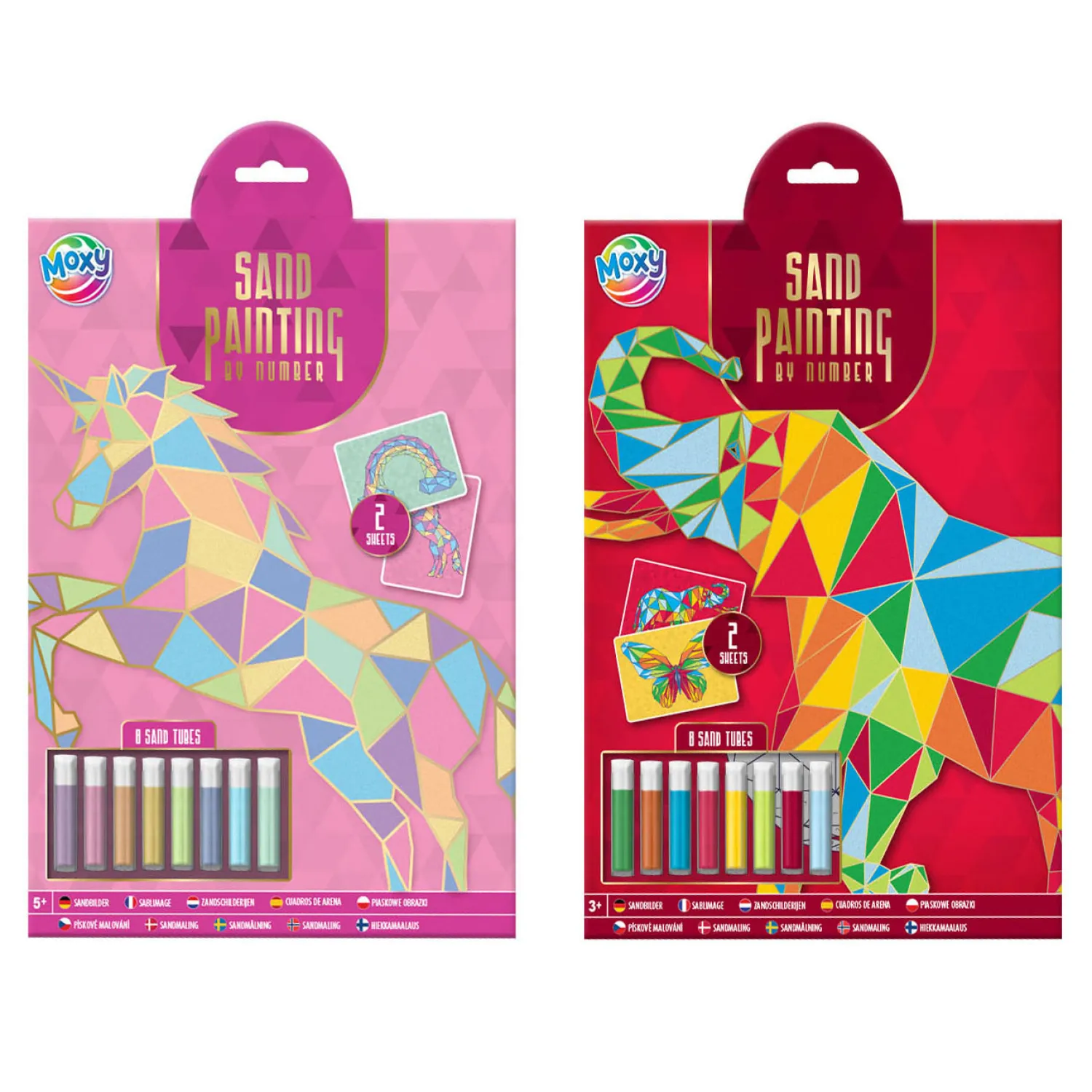 Inclusief 2 A4-vellen (verkrijgbaar in variant Unicorn en Dieren) en 8 buisjes met gekleurd zand. Geschikt voor kinderen vanaf 5 jaar oud.Prijs per stuk, verschillende uitvoeringen/kleuren worden door elkaar geleverd.