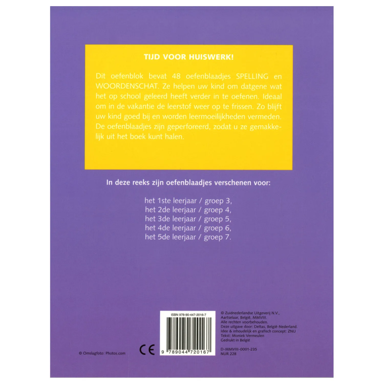 Dit oefenblok bevat 48 oefenblaadjes spelling en woordenschat. Ze helpen uw kind om datgene wat het op school geleerd heeft verder in te oefenen. Ideaal om in de vakantie de leerstof weer op te frissen. Zo blijft uw kind goed bij en worden leermoeilijkheden vermeden. De oefenblaadjes zijn geperforeerd, zodat u ze gemakkelijk uit het boek kunt halen.Inhoud: 96 pagina’s. Paperback uitvoering.