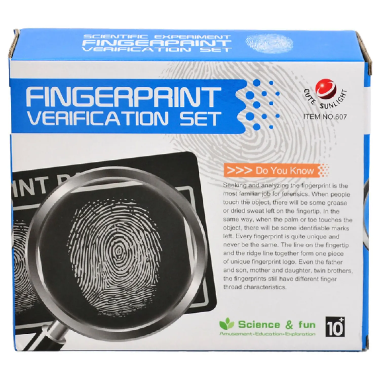 Het zoeken en analyseren van de vingerafdruk is de meest bekende taak voor forensisch onderzoekers. Wanneer mensen het voorwerp aanraken, blijft er wat vet of opgedroogd zweet van de vingertop achter op het voorwerp. Op dezelfde manier zullen er, wanneer de handpalm of teen het voorwerp aanraakt, enkele herkenbare sporen achterblijven. Elke vingerafdruk is uniek en nooit hetzelfde. De lijn op de vingertop en de noklijn vormen samen één unieke vingerafdruk. Zelfs bij vader en zoon, moeder en dochter, tweelingbroers, zijn de vingerafdrukken nog steeds niet hetzelfde.