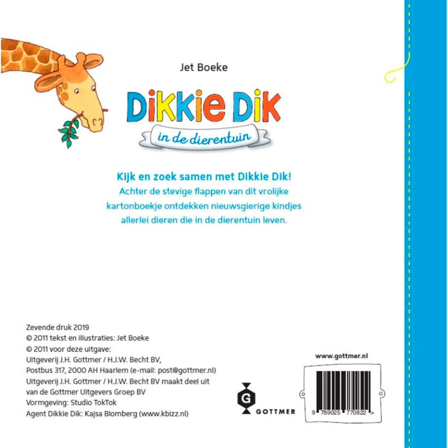 Dikkie dik gaat op onderzoek in het boekje Dikkie Dik in de dierentuin. Het vierkante flapjesboek staat vol met vrolijke platen. Onder de flapjes ga je op zoek naar de olifanten, apen, leeuwen en Dikkie Dik. Ga samen met Dikkie Dik in de dierentuin en ontdek de dierenwereld!