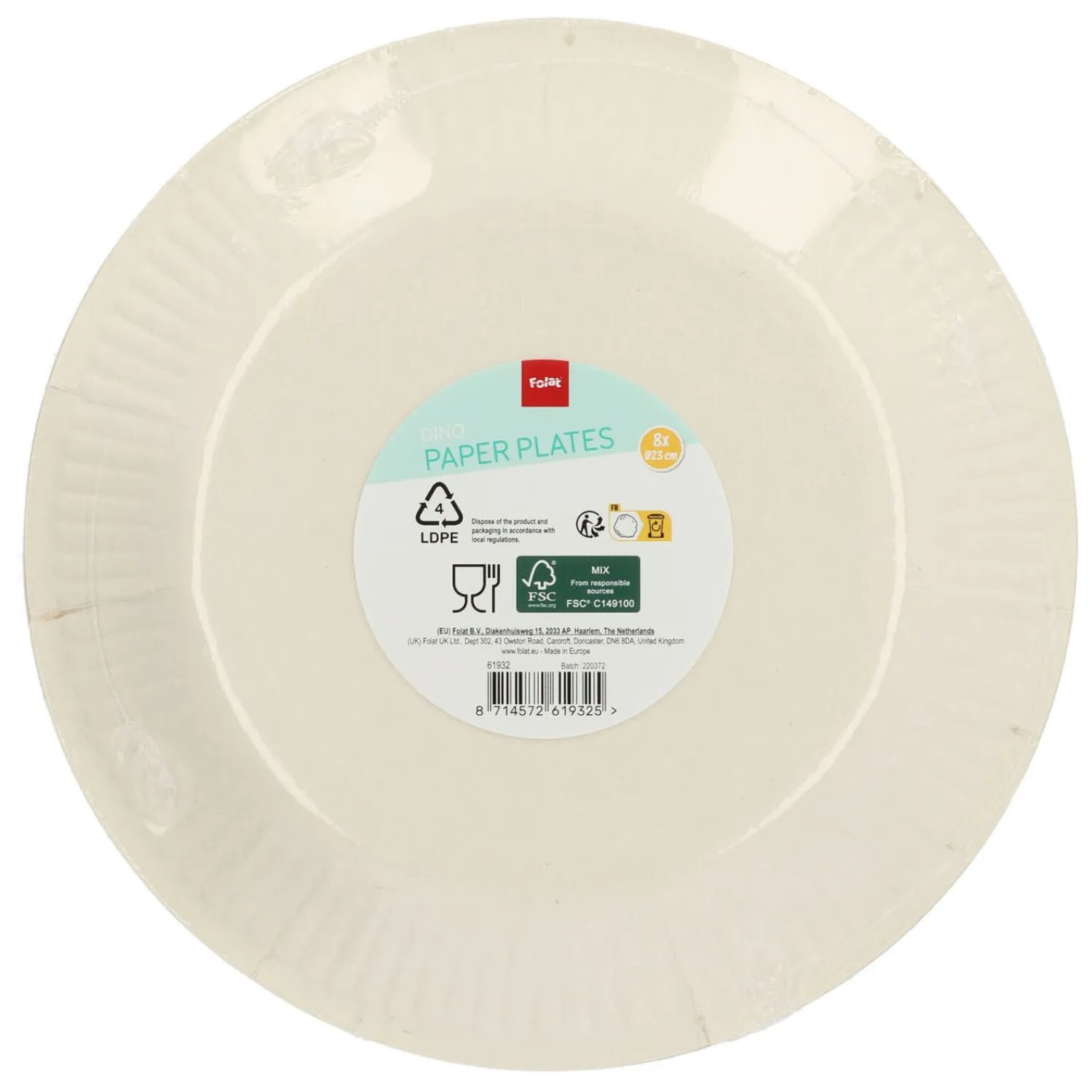 Borden Dinosaurus 23cm – 8 stuks. Inhoud: 8 borden. Kleur: Meerkleurig. Bijvoorbeeld te gebruiken tijdens de volgende feestgelegenheid/feestgelegenheden: Verjaardag en Kinderfeestje. Een bord heeft een diameter van 23 cm. Het artikel is gemaakt van FSC®-gecertificeerd papier.