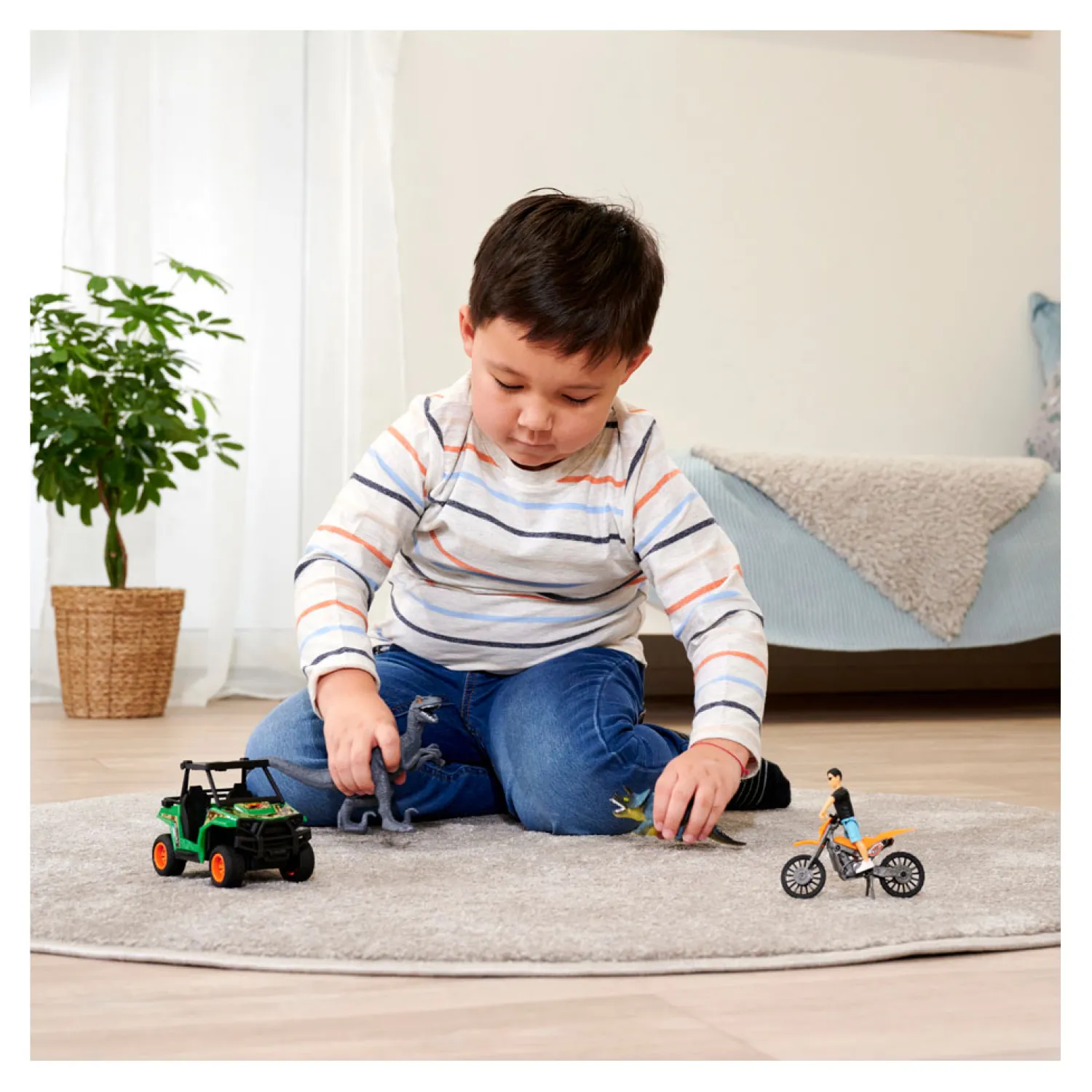Naast de twee voertuigen bevat de set ook twee grote dinosaurusfiguren (roofvogel en triceratops) waarmee je kleintje zich gegarandeerd zal vermaken tijdens zijn dinosaurusavonturen!