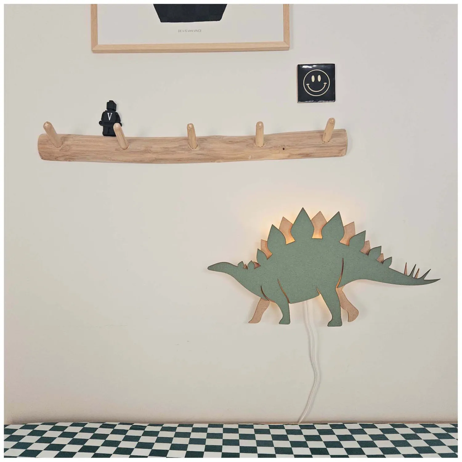 Breng avontuur en opwinding in de kinderkamer met de indrukwekkende Dino Wandlamp Stegosaurus van Tjalle en Jasper. Deze bijzondere wandlamp combineert de charmante uitstraling van de iconische Stegosaurus met praktische verlichting, waardoor het de ideale keuze is voor elke jonge dino liefhebber. Uitgevoerd in een stijlvolle groen/naturel kleur, past deze lamp perfect in elke kinderkamer, ongeacht het thema.
