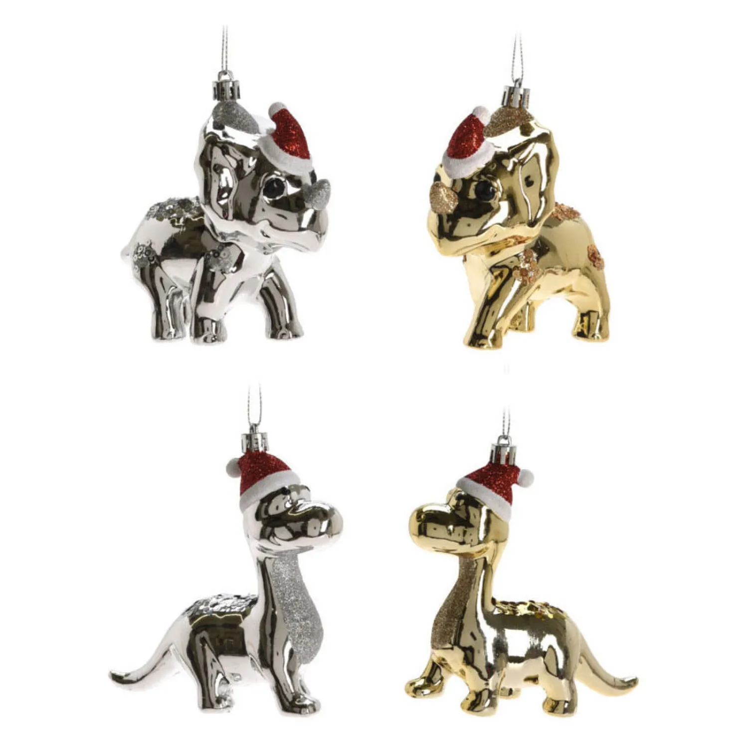 • Grappige ornamenten van dinosaurussen met kerstmutsen