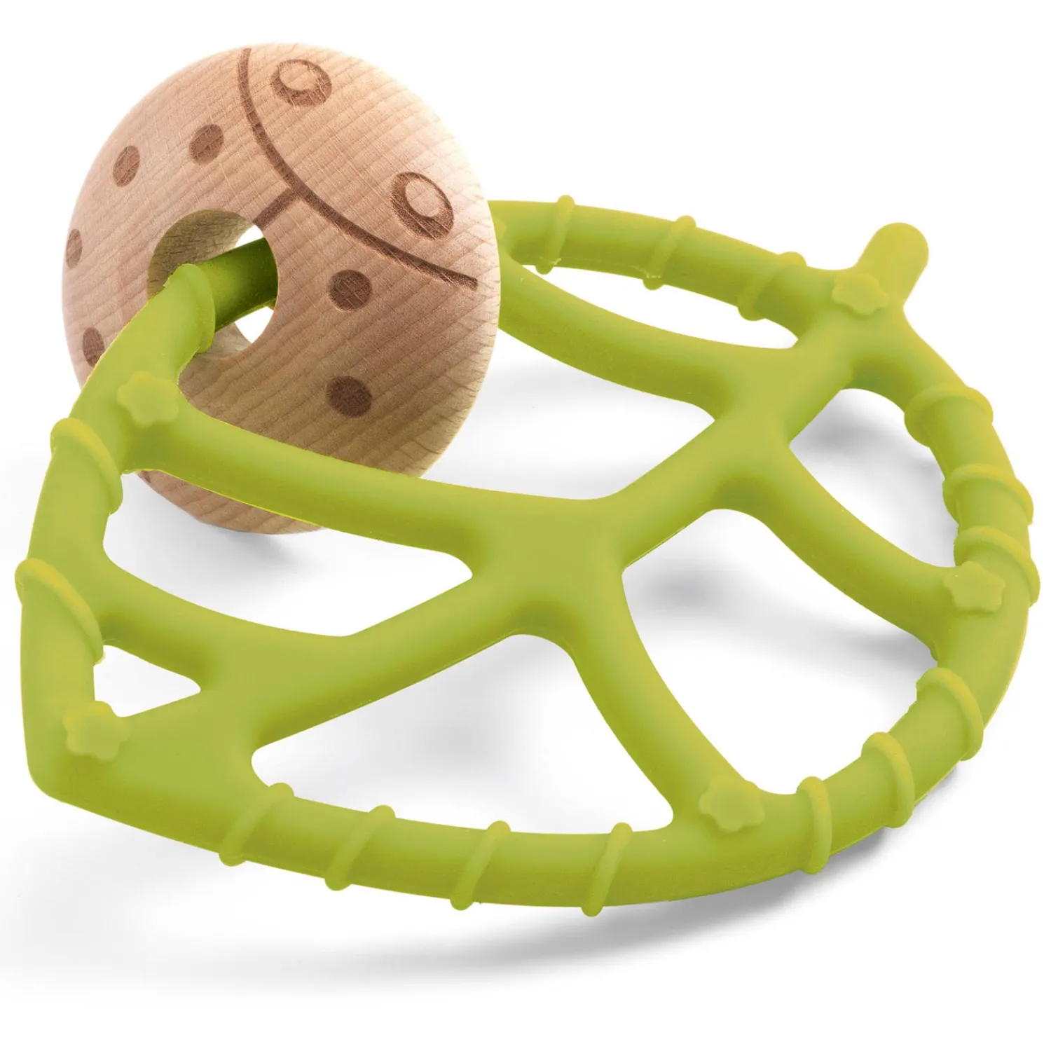 Baby’s kunnen naar hartenlust bijten en kauwen op deze leuke bijtring van Djeco. Het groene blad is gemaakt van kunststof en om het blad zit een lieveheersbeestje van hout. Beide zijn geschikt en veilig om op te kauwen voor een baby. Geschikt voor kinderen vanaf de geboorte tot 3 jaar. De afmetingen van de bijtring zijn 12,5 bij 11,5 bij 4,5 centimeter.