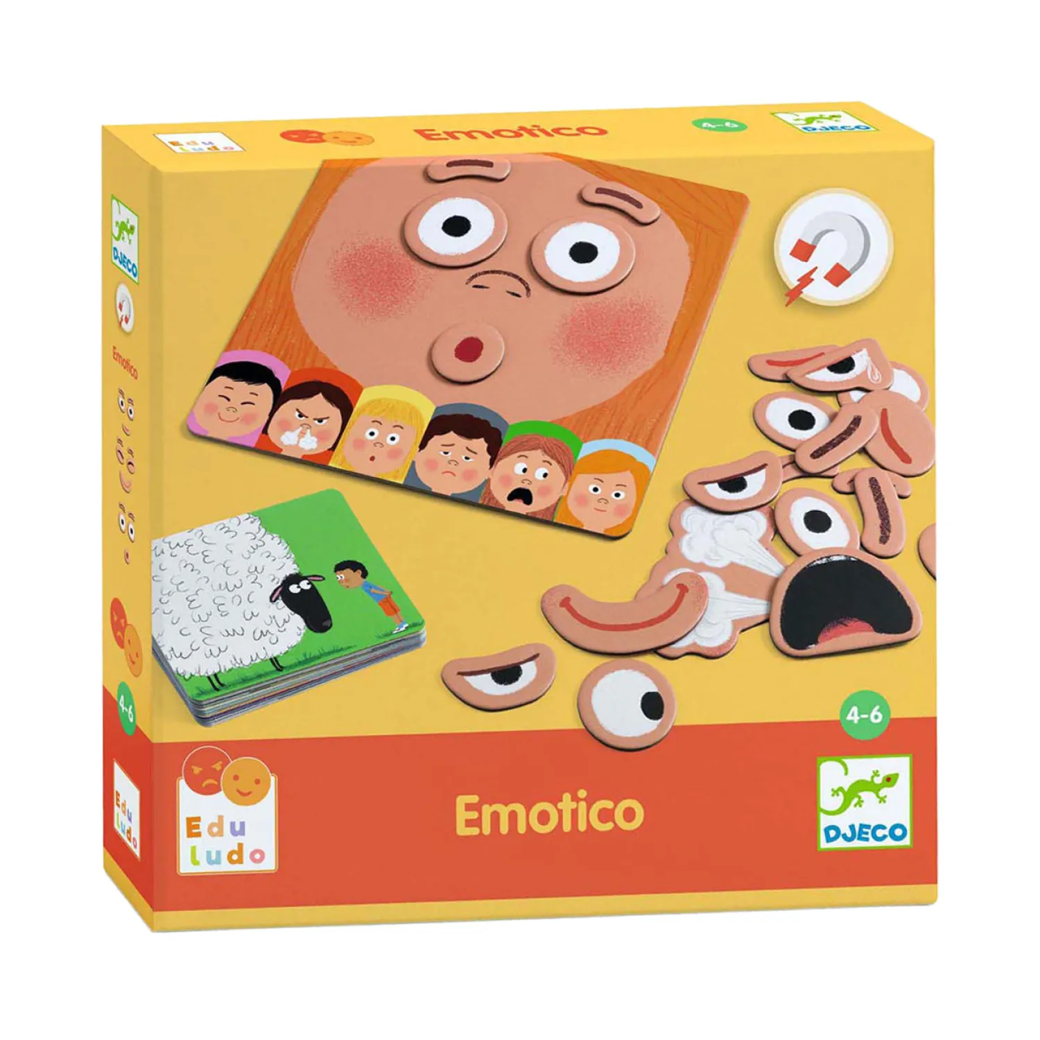 Inhoud: 24 tafereel-kaarten, 1 magnetisch spelbord, 27 magnetische stukken, 6 beloningsfiches. Spelregels in 10 talen.