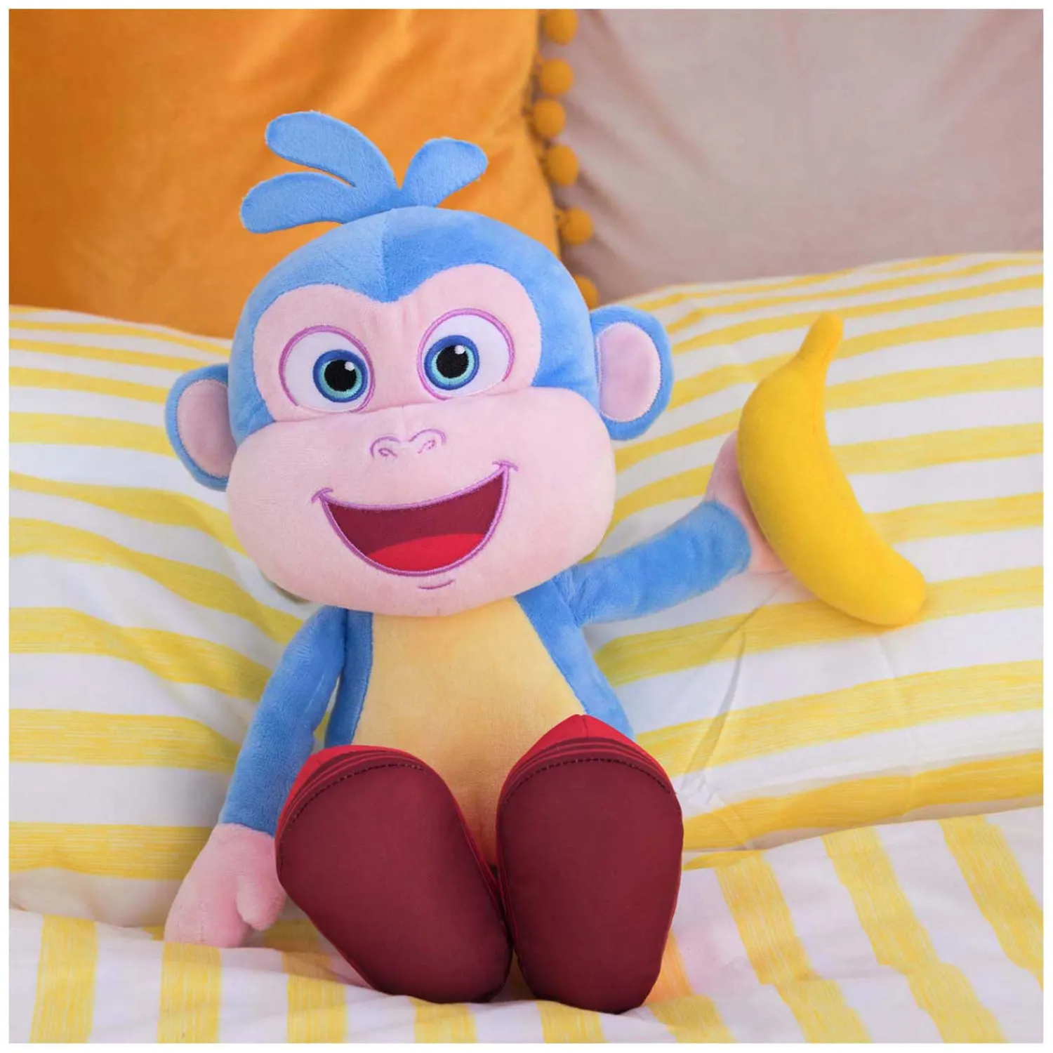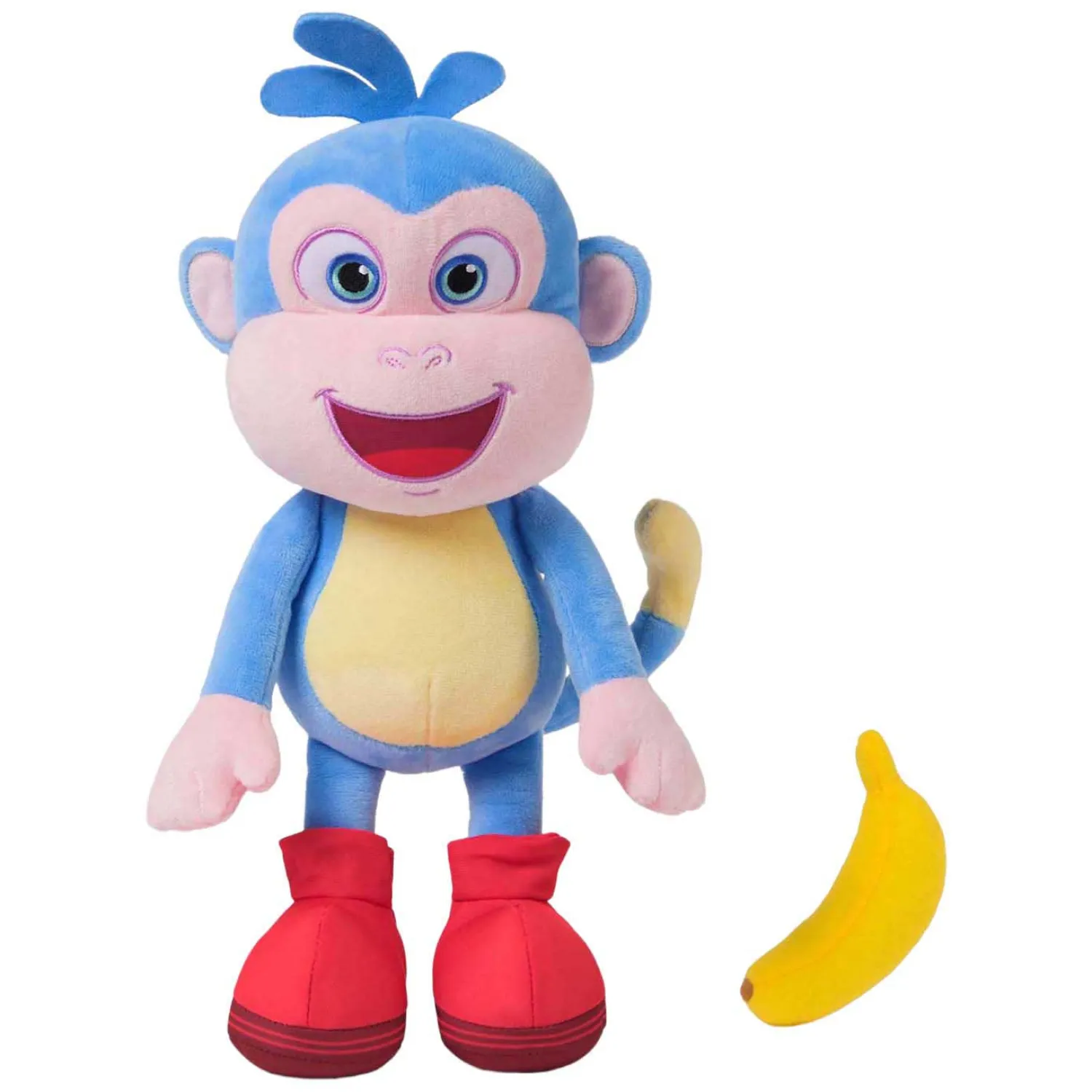 Kleine ontdekkingsreizigers kunnen knuffelen, hun favoriete avonturen naspelen en zingen met Boots. Deze innovatieve en interactieve knuffel komt tot leven met een zachte druk op zijn buik en zingt en praat dan! Boots zingt 2 liedjes, waaronder het themalied van hem en Dora, en zegt 9 bekende, grappige zinnetjes uit de show!