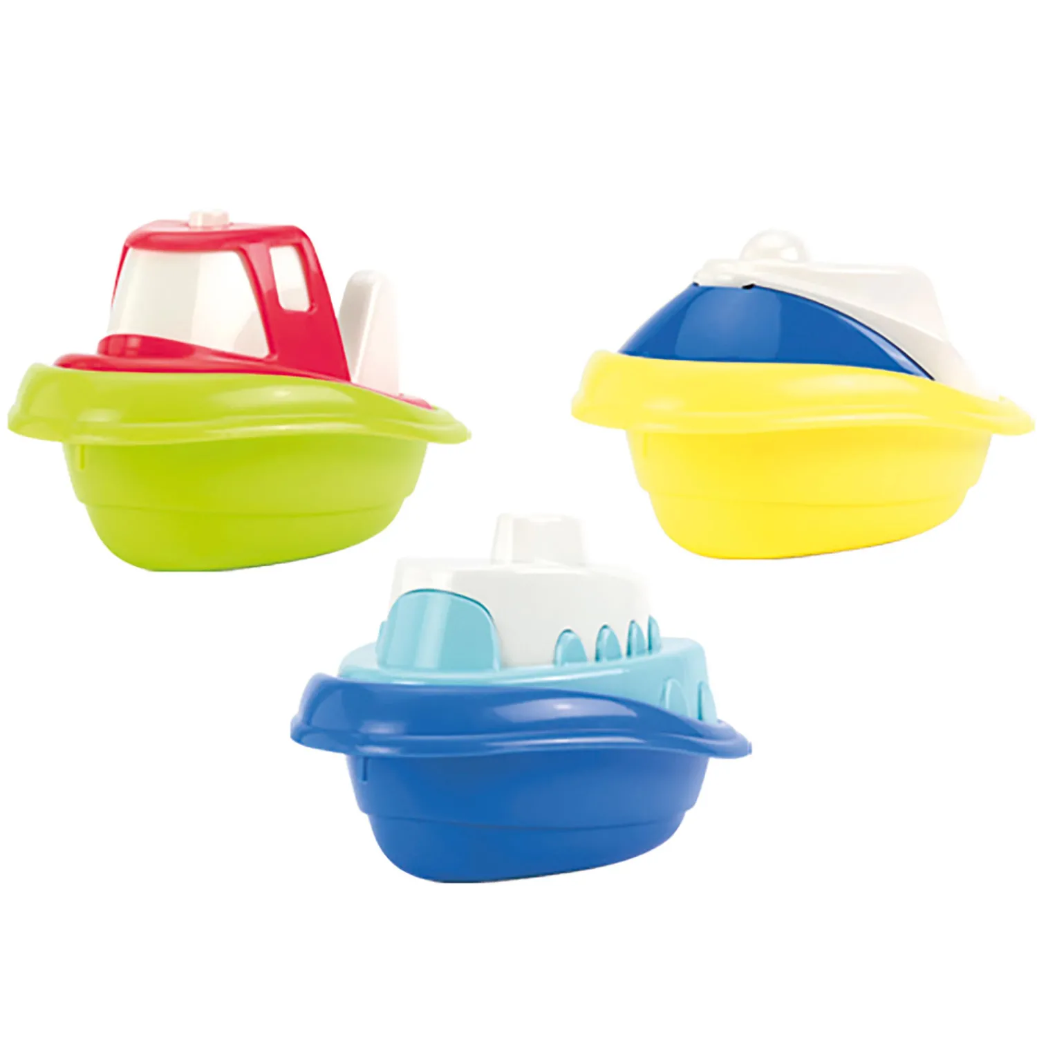 Klein bootje van Ecoiffier. Verkrijgbaar in drie verschillende modellen en kleuren. Het bootje heeft een lengte van 14 centimeter.Prijs per stuk, verschillende uitvoeringen/kleuren worden door elkaar geleverd.