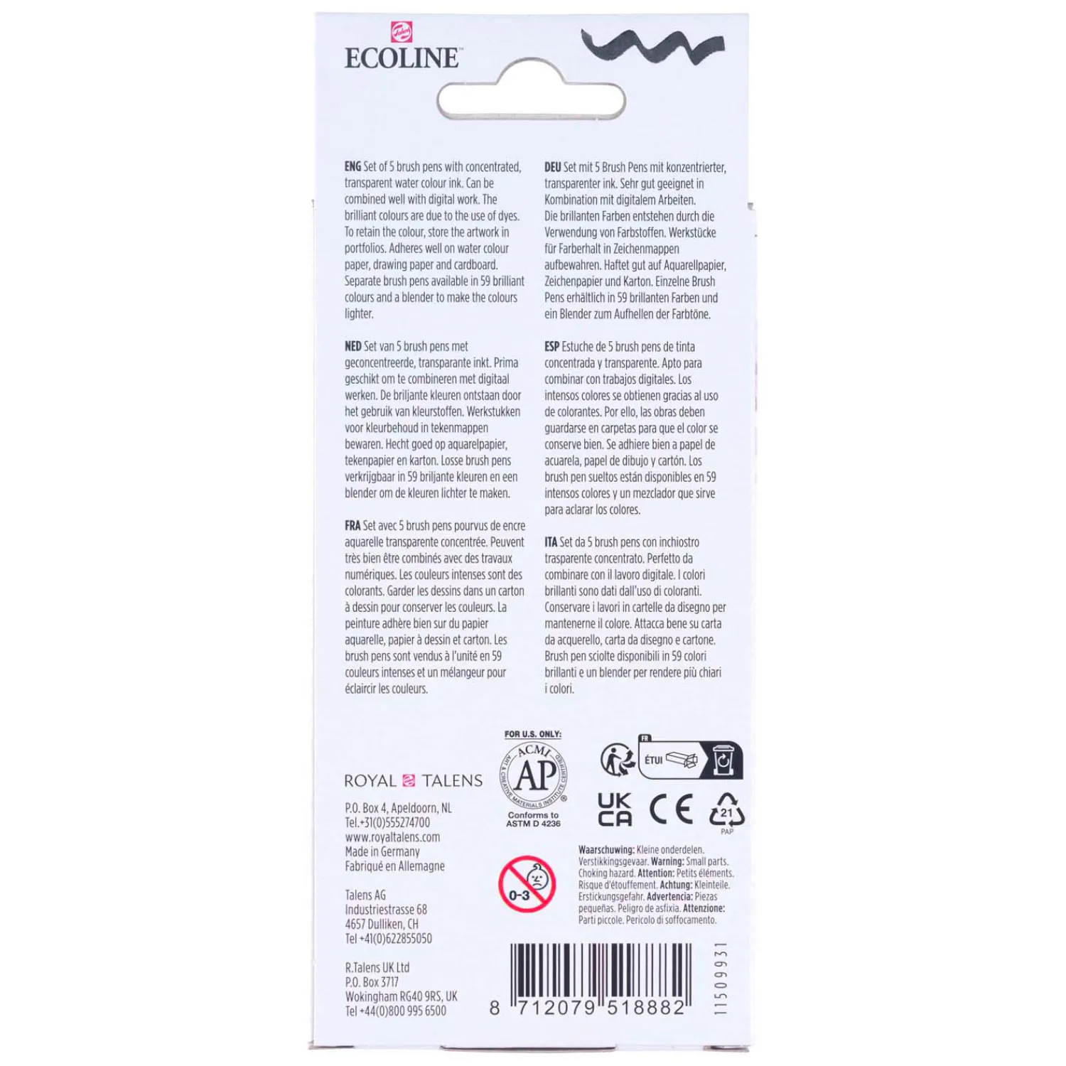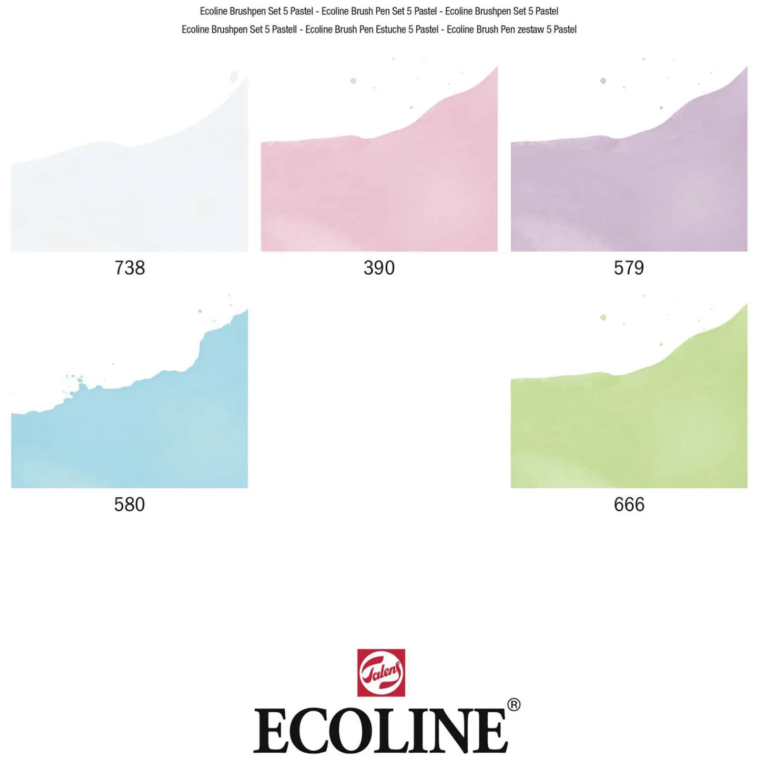 Deze set bevat 5 Ecoline Brush Pens in zachte pasteltinten. De Brush Pen kenmerkt zich door de flexibele punt en het uitgebreide assortiment schitterende kleuren dankzij de pure formule op kleurstofbasis. De transparante kleuren bieden de beste resultaten bij gebruik op wit of zeer lichtgekleurd papier. Indien gewenst kun je de kleurintensiteit gemakkelijk verminderen door ze te verdunnen met water of met de Brush Pen blender (apart verkrijgbaar). Deze pennen zijn perfect voor handlettering, aquareltekeningen, snelle schetsen en finishing touches.