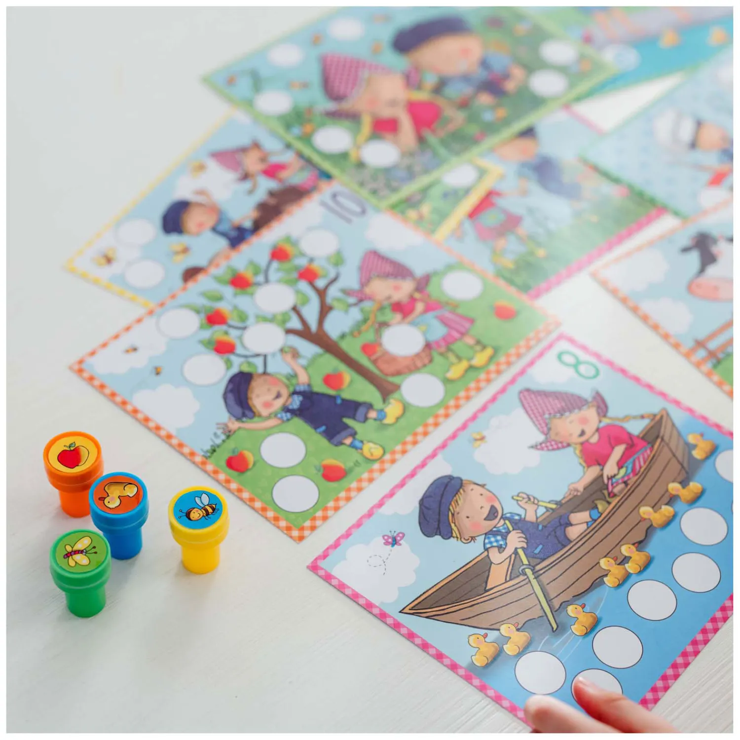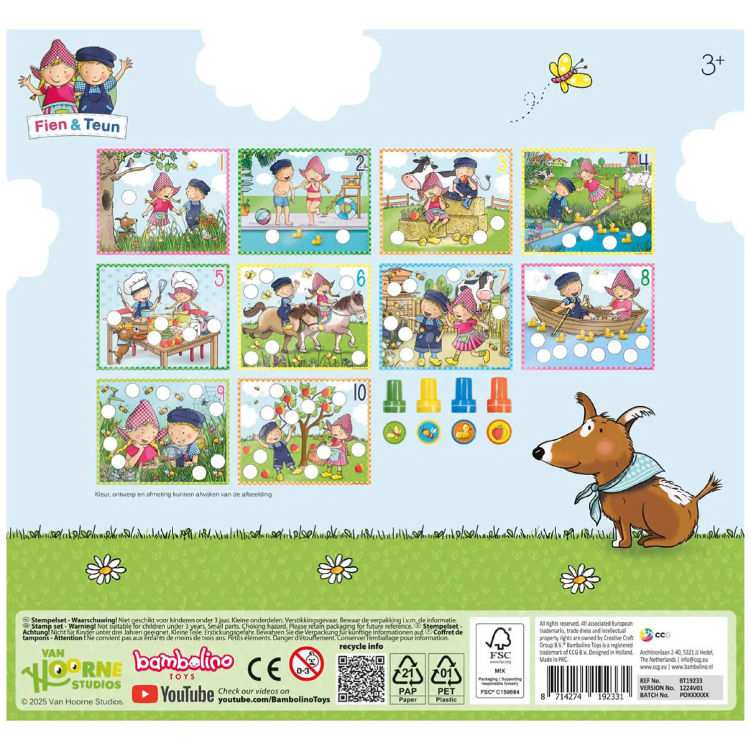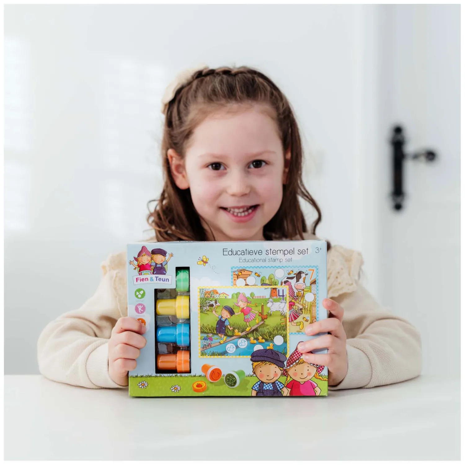 Geschikt voor kinderen vanaf 3 jaar. De set bevat 10 platen en 4 stempels.