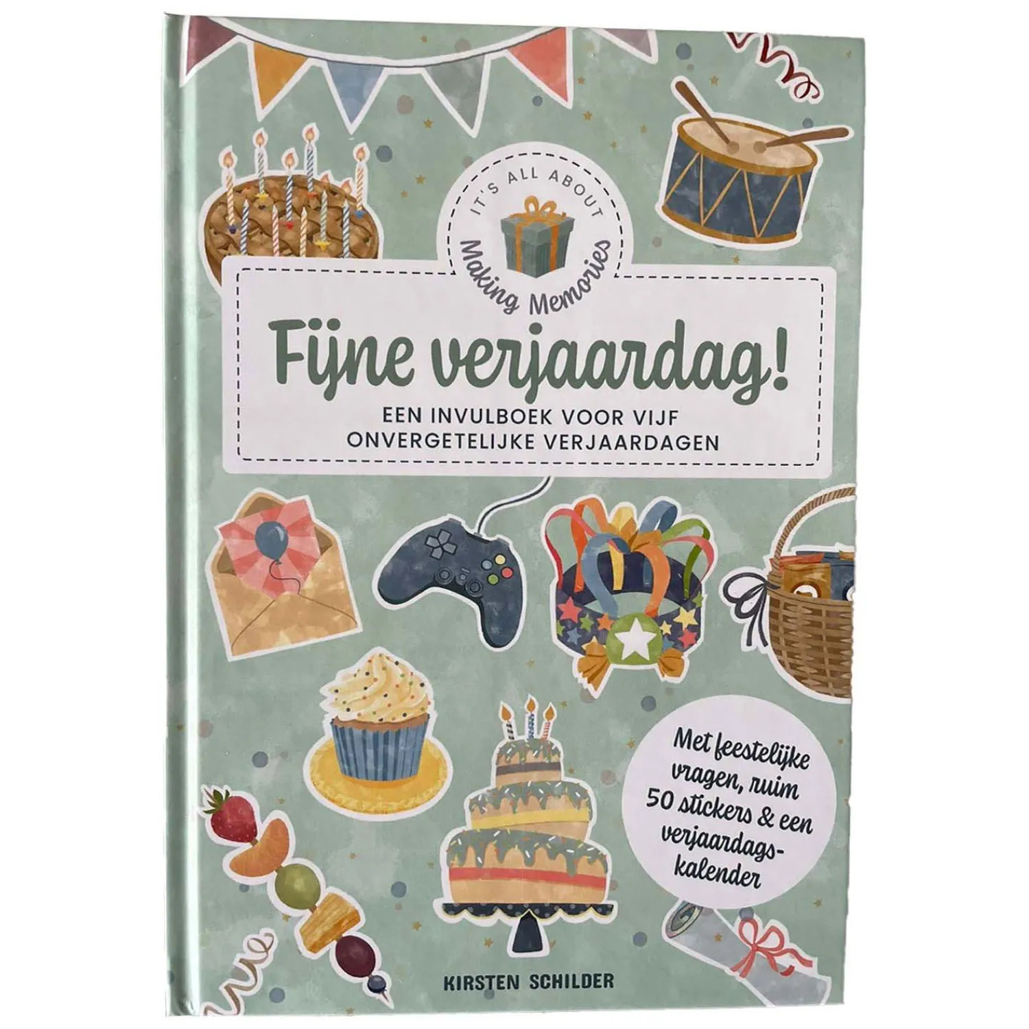 In dit boek is ruimte om al het leuks en liefs van zes verjaardagen op te schrijven. Hoe je partijtje was bijvoorbeeld, met vrolijke foto’s van alle gasten. Je kunt het boek in je eentje invullen. Of als opa en oma ’s middags op visite komen, of ’s avonds, aan het eind van je feestelijke dag met je vader of je moeder. Voor hen staan er namelijk ook vragen in het boek: hoe zij vroeger hun verjaardag vierden, bijvoorbeeld. Of wat hun mooiste verjaardagscadeau ooit was. Leuke gesprekjes gegarandeerd.