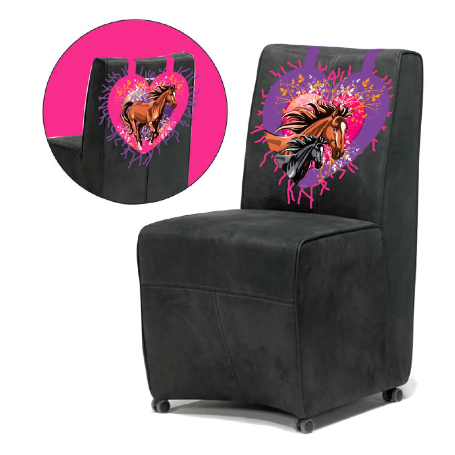 Versier de stoel met deze stoelversiering met paarden afbeelding.
