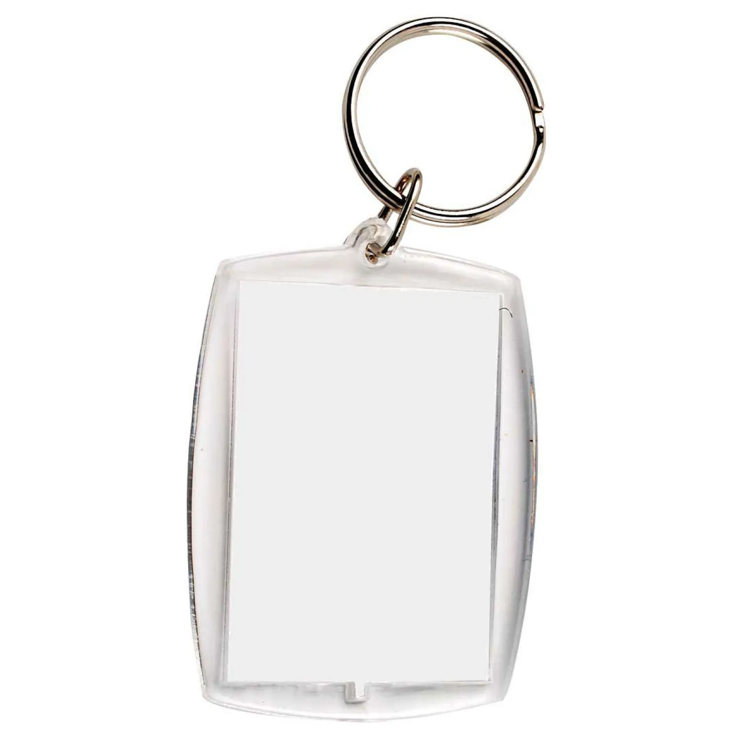 Sleutelhanger van transparant acryl – met sleuf om tekeningen, foto’s etc erin te doen