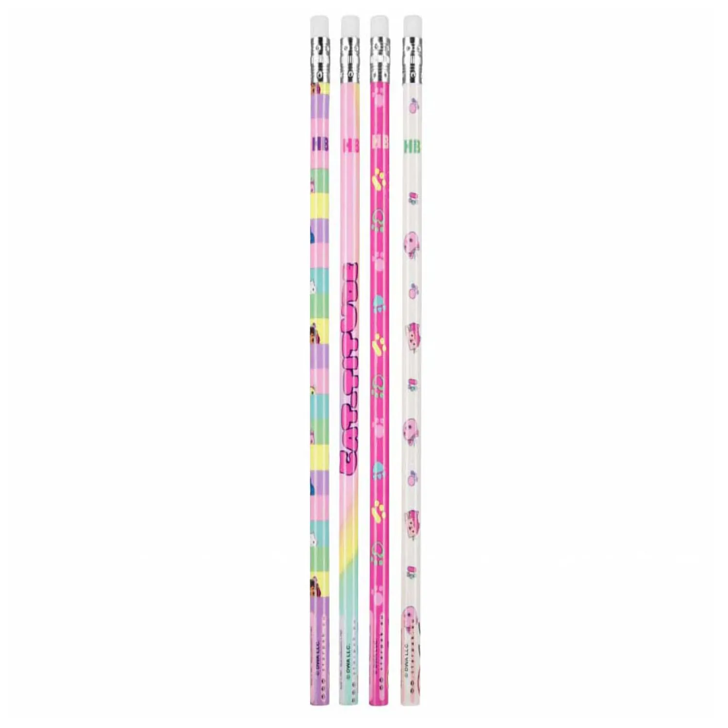 Inhoud verpakking: 4 stuks potloden met gum. Gemaakt van resistent grafiet dat niet breekt tijdens het slijpen. Afmetingen: 19 cm.