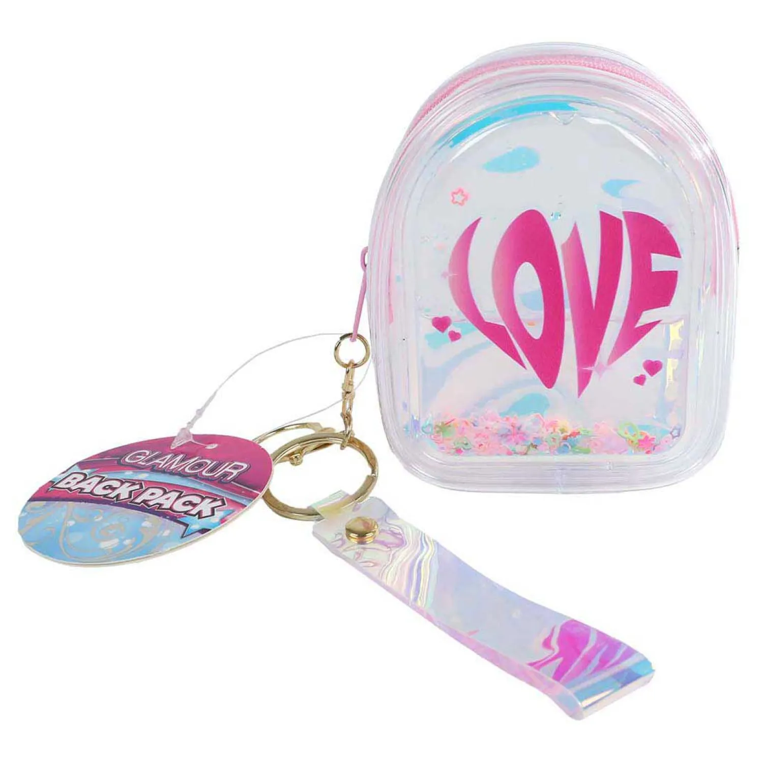 •Holografische afwerking met roze “LOVE”-opdruk