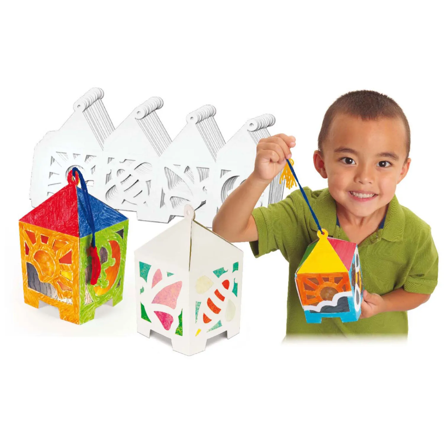 Deze feestelijke lantaarn van Roylco mag je eerst heel mooi kleuren of beschilderen. Plak vervolgens crêpepapier, vliegerpapier of zijdevloeipapier achter de vlakken voor een sfeervol glas in lood effect. Gemakkelijk te vouwen tot een echte 3D-lantaarn. De set bestaat uit 32 lantaarns.